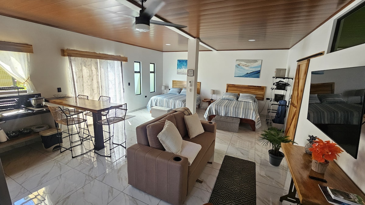 Bine ai venit în casa mea, casa ta. Este o plăcere să te avem ca oaspete! Te invităm să te bucuri de tot ce are de oferit acest loc minunat, unde ne-am gândit la fiecare detaliu pentru a-ți face șederea la noi confortabilă și plăcută, astfel încât să te simți ca acasă. La doar 10 minute de Parcul Național Manuel Antonio, într-un mediu plăcut și sigur, plin de pace și liniște. Unde te poți trezi cu păsările cântând și vei avea vizita. 🦥 🙉 🦜 Pura vida 🤙🏻🇨🇷