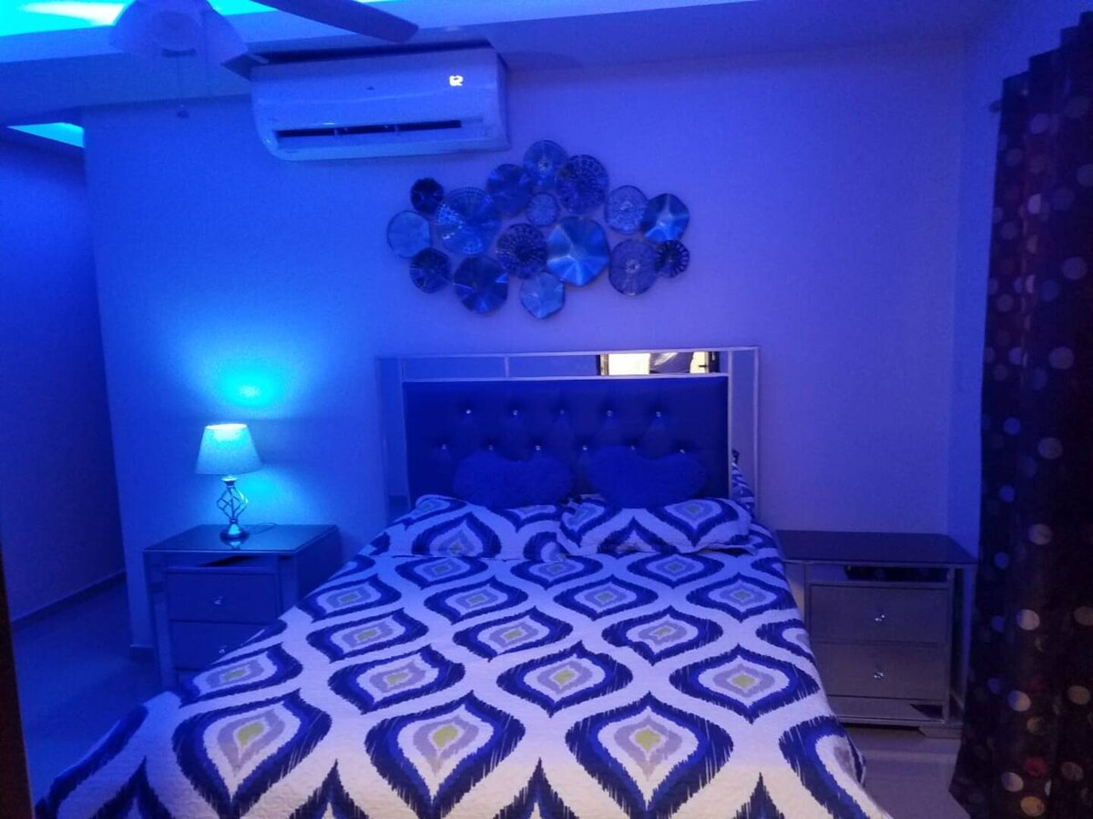 This stylish place to stay is perfect for group trips and vacations. Designed to provide all the comfort necessary while away from home. This is a luxury apartment with air-conditioned bedrooms and living rooms with space for up to 8 guests by request (4 guests per apartment or 8 if multiple apartments are rented for bigger groups). Premium comfort perfect for families, friends & private events. High-speed internet, backup generator & Smart TV.