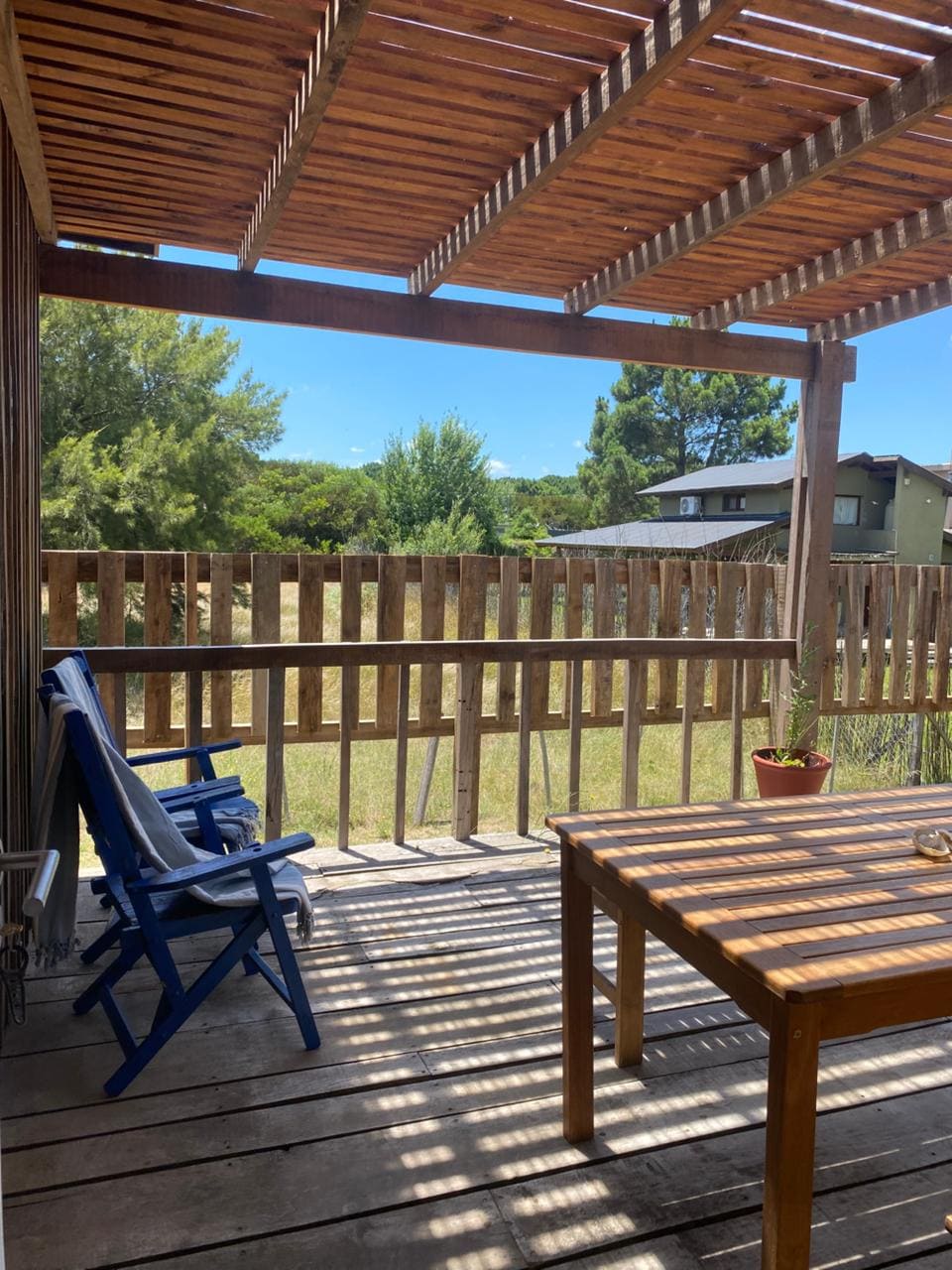 Casa de Madera Planta Baja, es un departamento, está ubicado en Las Gaviotas. Tiene dos habitaciones, baño con bañadera, cocina y living integrados. Luminoso, ventilado, con un deck exterior techado ideal para pasar tiempo afuera. Wifi y biblioteca.
