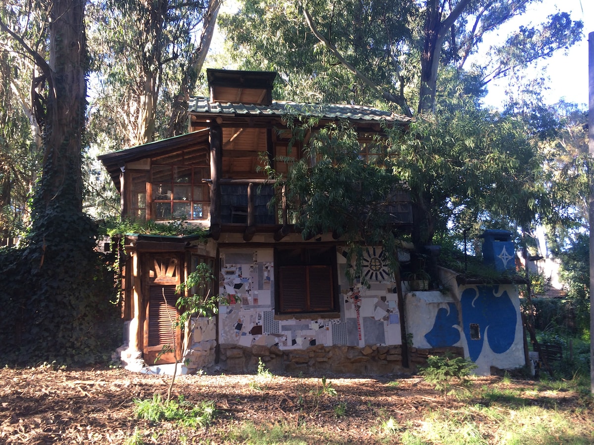 Cabană la câteva străzi distanță de mare, pârâu și pădure cu 2000 m2 de parc.