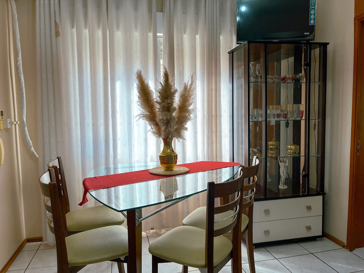 Apartament confortabil și liniștit în centrul orașului Passo Fundo. Aproape de baruri și restaurante, piețe, zone comerciale și stații de autobuz. Ideal pentru cupluri sau o singură persoană. Zonă sigură, la 100 de metri de strada Independência, într-unul dintre cele mai bune puncte ale Passo Fundo. Mediu liniștit pentru ca tu să te odihnești și să te bucuri de șederea ta în oraș. Apartamentul are: - Aer condiționat - bucătărie completă - Pat dublu. - Garaj gratuit