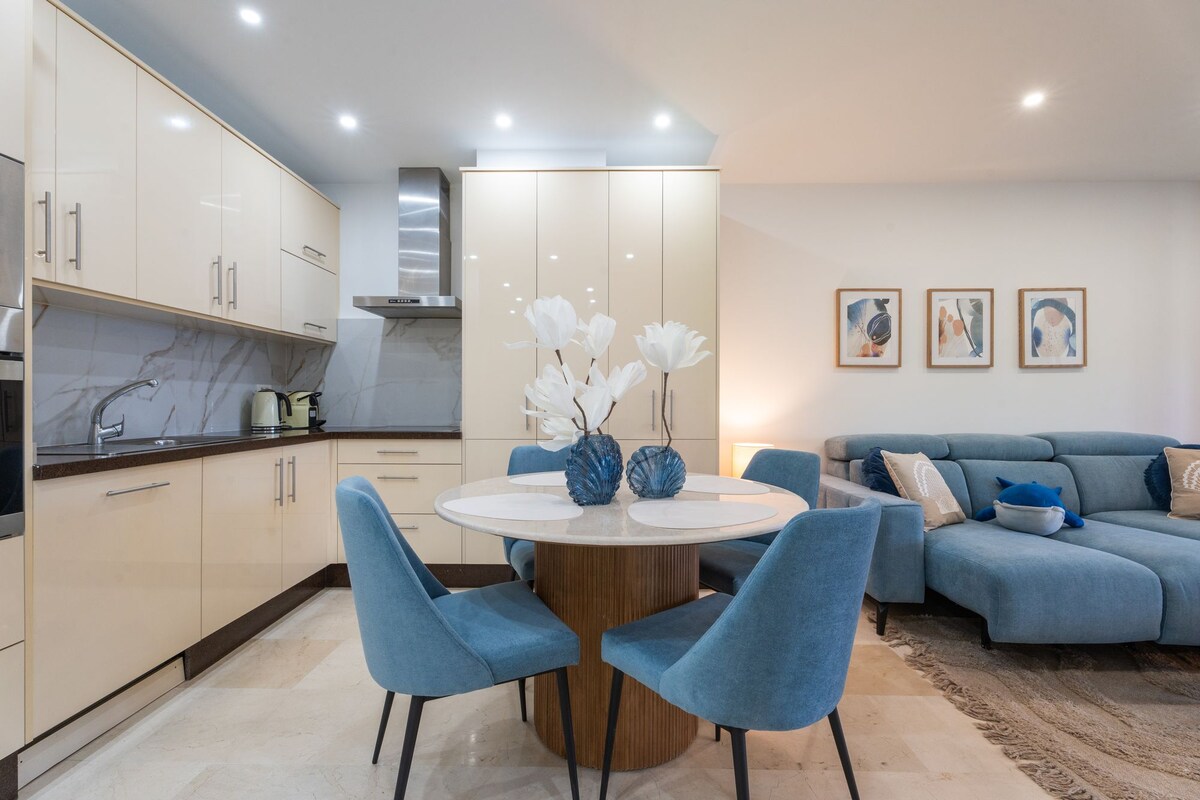 Acogedor y totalmente equipado Blue Suite frente al mar, con acceso directo a la playa 10m, Ideal para los amantes del mar. Muy iluminado y con increíbles vistas. Zona muy tranquila y turística del sur de Tenerife. Alquiler de bicicletas, Excursiones, Supermercado, restaurantes, farmacia, panadería, Centro comercial Rosa Center, muy cerca. Relájate y desconecta en este alojamiento tranquilo y elegante.