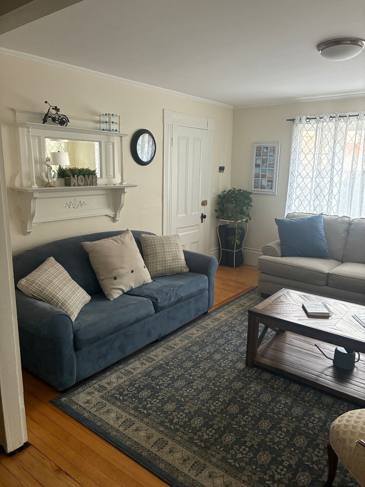 A uniquely detailed single-floor unit in a 2 unit house featuring a large kitchen/dining room, living room, and a private cozy veranda. Queen Bedroom & additional sleeping for 2 with a deluxe air mattress. This space is perfect for couples, families with young children, or a single person. Only one dog allowed no cats. This unit is on the lower floor of a two-family house occasionally you can hear steps from the upstairs. PLEASE note parking on site is very tight small cars compact SUVs only.