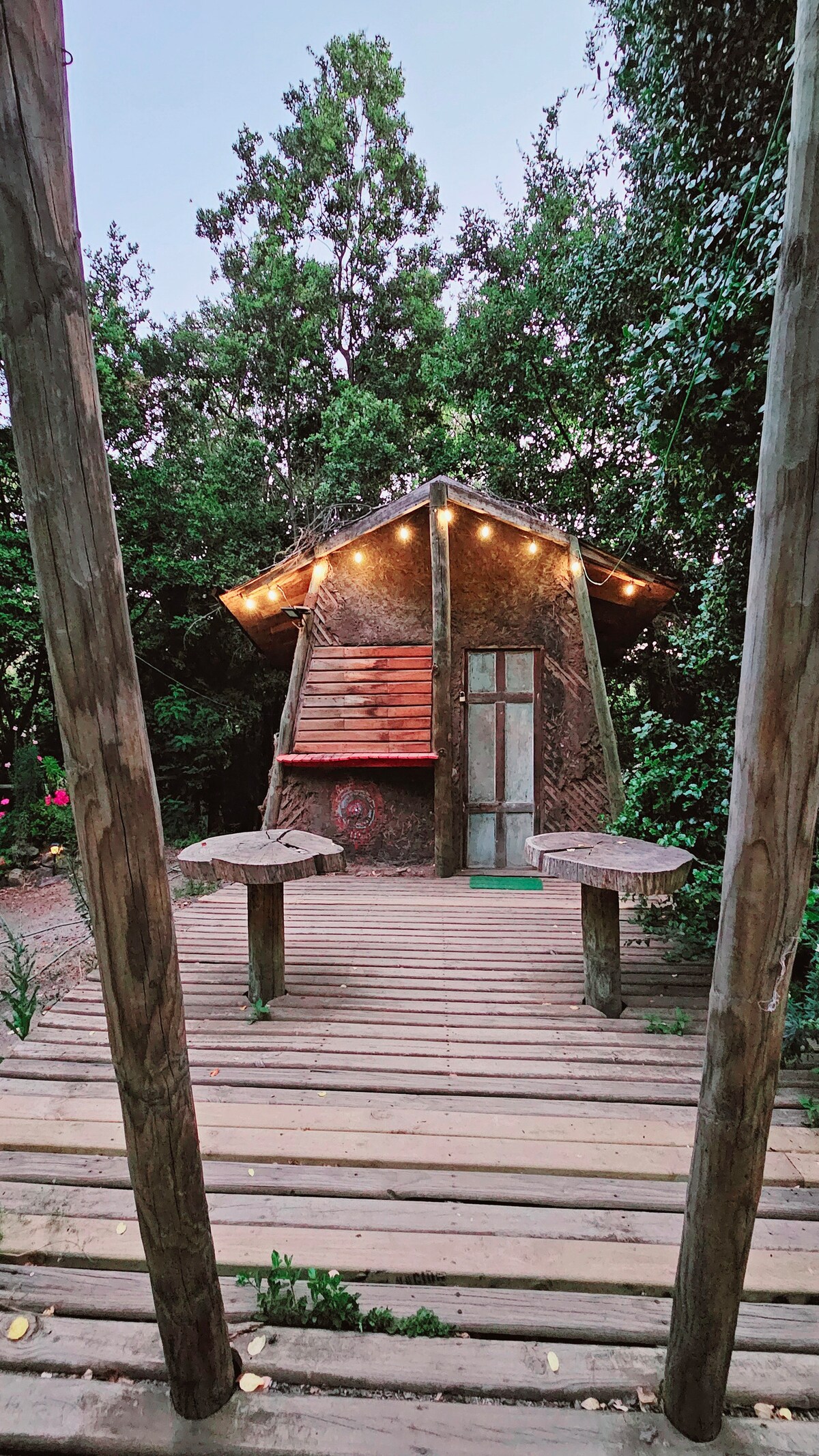 "Neo Nativo" es un santuario de 10.000 m² de bosque nativo con UNA sola cabaña y UNA tinaja, todo 100% PRIVADO para ti. Un rincón sagrado de conexión y sanación, a los pies del Parque Nacional La Campana, en Olmué. Es un espacio único donde encontrarás: • Tinaja madera de Ciprés (agua caliente e hidromasajes). • Cabaña (máx. 4 personas). • Quincho. • Senderos. • Terraza yoga/ meditación. • Zona de hamacas. .• Estacionamientos. *Opcionales: Masajes terapéuticos en el bosque, desayunos, otros.