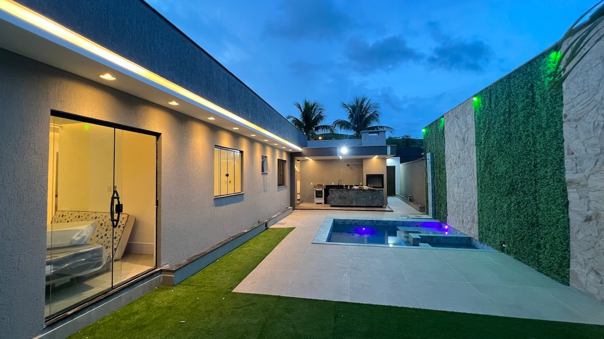 Te vei distra de minune în această casă confortabilă și spațioasă. Aproape de plajă, de piețele principale de evenimente și de cumpărături. Living mare cu 3 camere, suită principală cu birou, canapea și cadă cu hidromasaj. Apartament canadian (2 dormitoare integrate cu 1 baie). Spațiu frumos de gazon pentru a asigura distracția tuturor. Piscină frumoasă cu terasă mare. Casa este aproape de Barroco (cea mai bună locație din regiune). Hărțile oferă o poziție îndepărtată (greșită). Suntem aproape de Praça dos Gaviões. Casă nouă și nici măcar decorată.