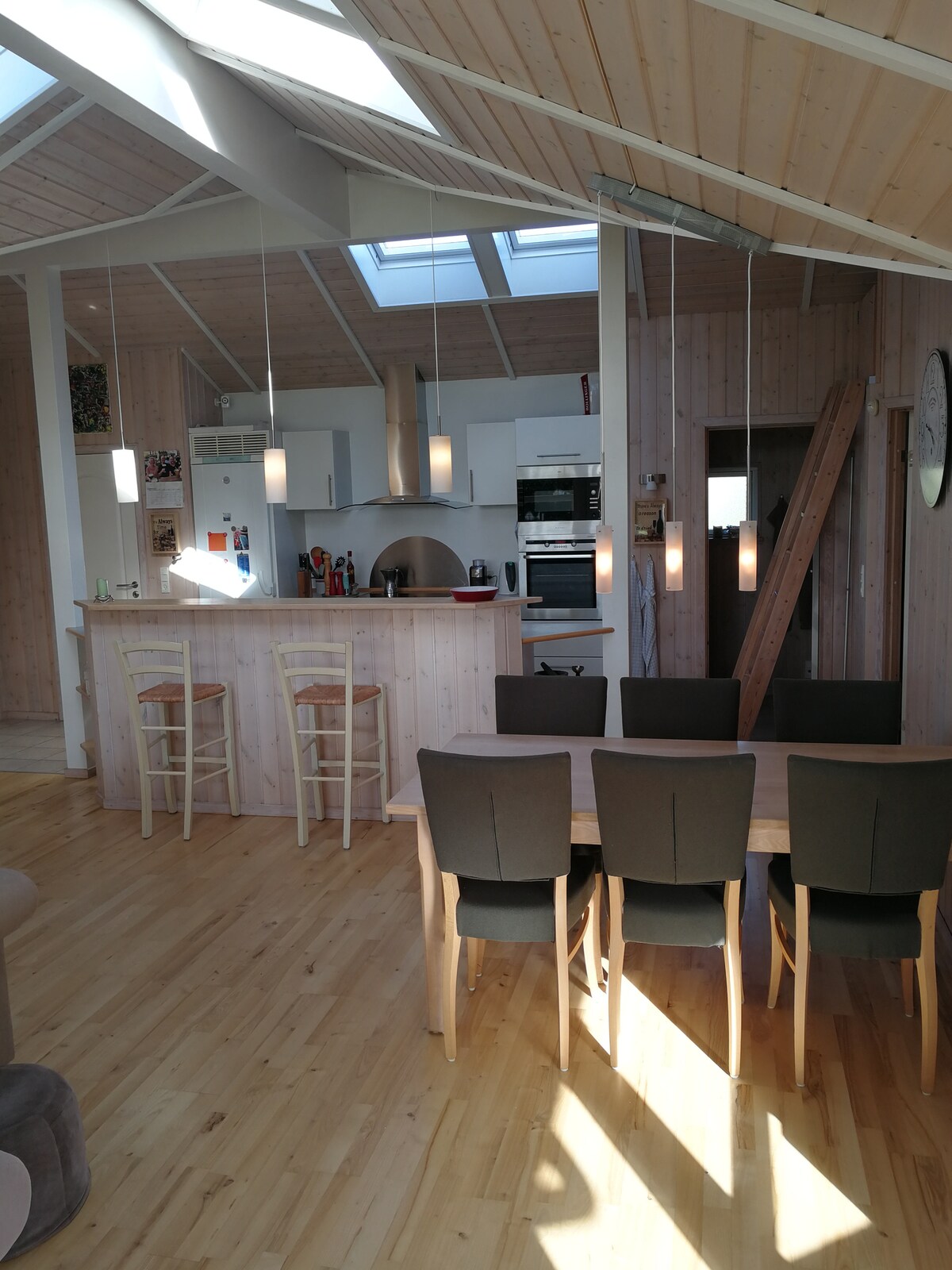Casă de lux nou construită, de 119 m2. Living mare luminos + bucătărie în toată camera. 2 dormitoare cu paturi duble + 1 cameră cu 2 paturi de o persoană + mansardă cu 2 paturi. Baie mare cu duș/toaletă/spa. Toaletă pentru oaspeți. Intrare. Spa și saună în sălbăticie. Încălzire prin pardoseală peste tot. 1700 m până la cea mai bună plajă din Danemarca. 500 m până în centru. Aproape de natură, de pistele de canotaj și de bowling și de cumpărături. 1 animal de companie este binevenit. Wi-Fi prin fibernet gratuit. 4 locuri de parcare Notă Plată preț zilnic Consum de apă: 70 DKK / m3 + Electricitate 2,75 DKK per kWh