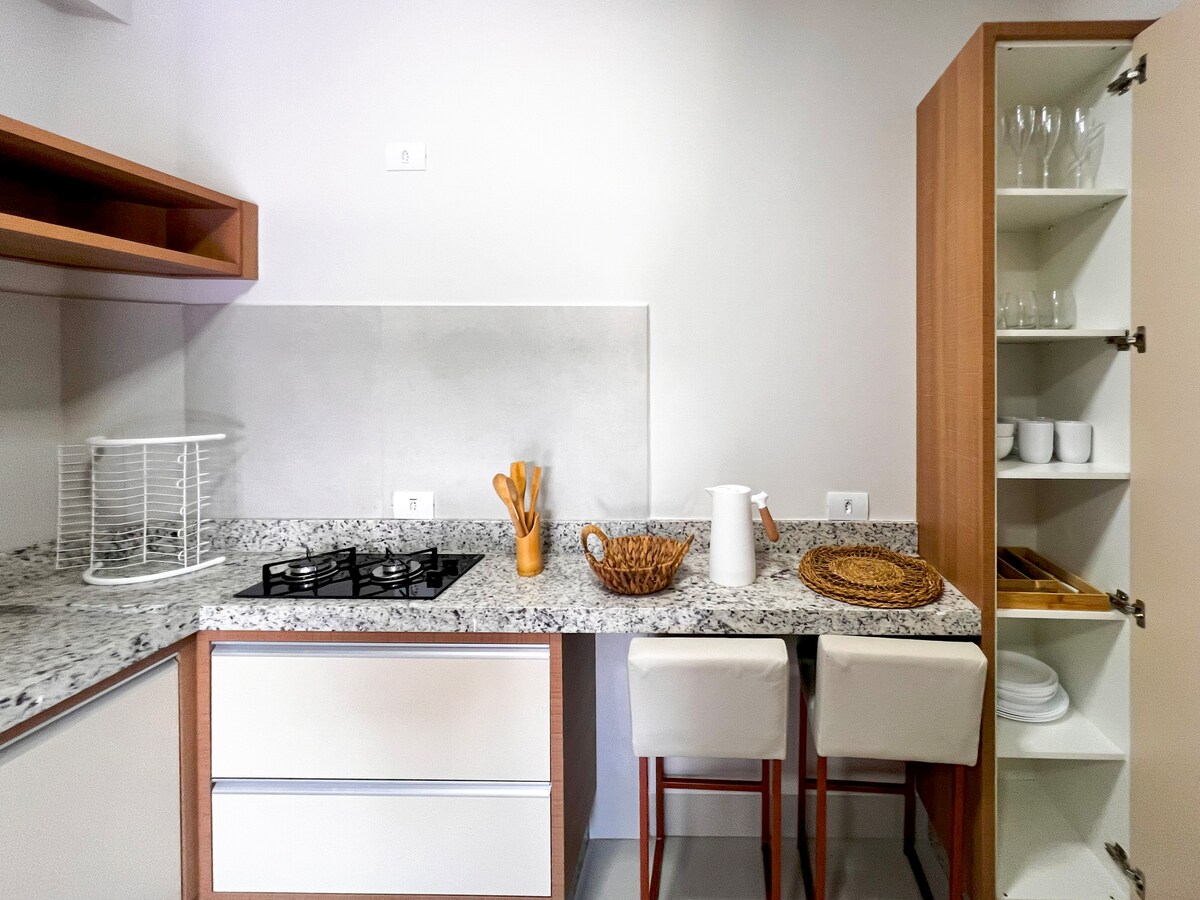 Barceló Porto Village! Apartamento aconchegante, tipo kitnet, mobiliada, climatizada e totalmente equipada em Porto Rico (PR). Um espaço confortável e acolhedor, perfeito para casais que buscam tranquilidade e praticidade. Localizado no Riviera, um bairro novo, monitorado por câmeras, seguro, tranquilo e totalmente planejado, próximo a mercados, farmácia e restaurantes.