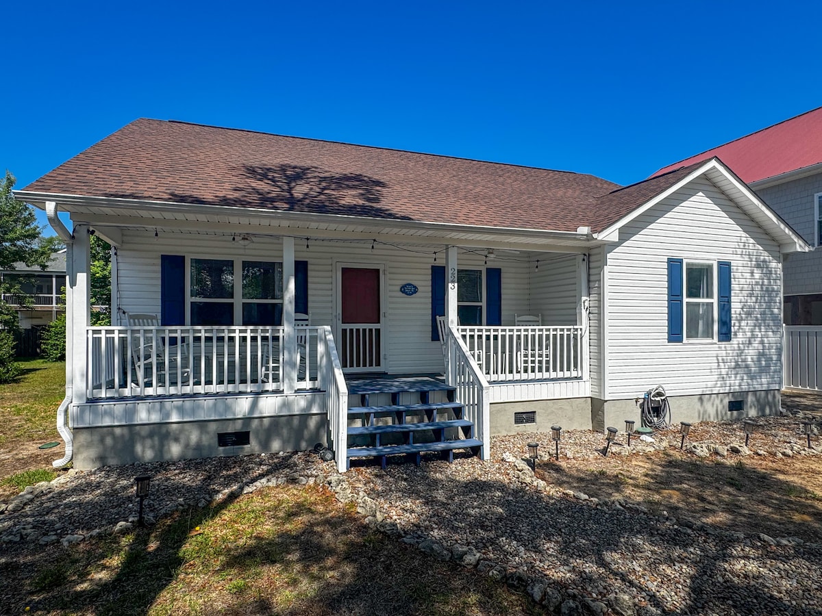 Original beachfront cottage on Holden Beach, just steps from the sand and water. Enjoy the dolphins and shorebirds from the rockers on the covered porch. Cozy studio has been renovated with thoughtful upgrades. Kitchen is fully stocked including coffee maker, spices, condiments, and premium cookware. No stairs, ground-level are ideal for children, older guests, and pets (pet fee collected separately). Lots of amenities and beach items are provided for your comfort and convenience.