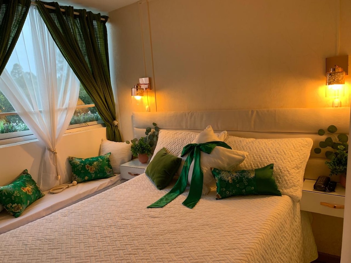 Fascinante apartamento de full Comfort, no apto para fiestas. La combinación perfecta entre el lujo y comodidad al ingresar te recibe una calidad sala-comedor destacando cada detalle de decoración, una cocina full equipada para satisfacer tus gustos. Una vista amena, 2 habitaciones confortables. La suite principal cuenta con baño, vestier y una espectacular cama queen. La habitación de huéspedes cuenta con una hermosa cama semi-doble y cama sencilla vigilancia 24 hr parqueadero privado y mas.