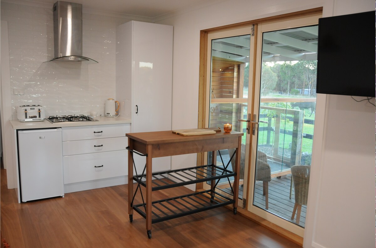 Interiorul renovat al Koala Kottage are o zonă de living, zonă de luat masa, baie privată mare, rafinată, cu vedere la curtea din grădină și o bucătărie ultra modernă, complet utilată. Există, de asemenea, o zonă de luat masa și grătar afară pe puntea acoperită cu viță de vie sau utilizați zona de foc așezată cu o farfurie de gătit pentru grătar. Kottage are tavane boltite din lemn căptușit cu cer. Înconjurat de un habitat natural cu copaci de gumă, koala, canguri și păsări indigene colorate.