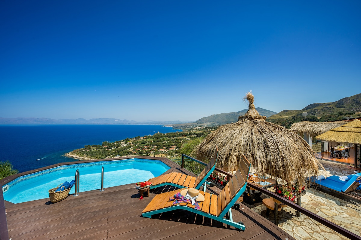 Villa Leukè:piscina, vista faraglioni di Scopello
