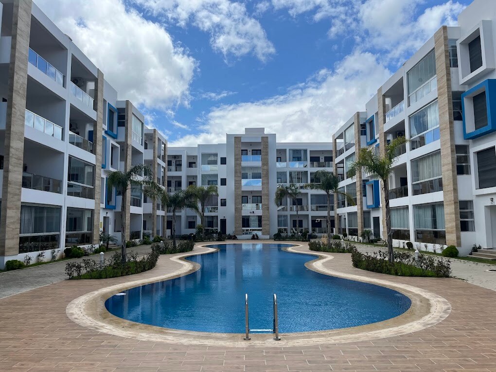 Situé en plein coeur de la wilaya center, avec possibilité de place de parking privée payant en Sterrain, vous y trouverez les meilleures restaurants de Tétouan à 1 min ainsi que différents commerces Carrefour market, épicerie, boucherie, hamam, coiffeur, salle de sport Fit one, plusieurs cafés de renommée, glacier, pâtisseries françaises, salle de jeux pour enfants jusqu'à 8 ans, absolument tout à 3 min à pieds. Quartier sécurisé avec présence de police 24/24. Plage à 10kms unique sur Tétouan