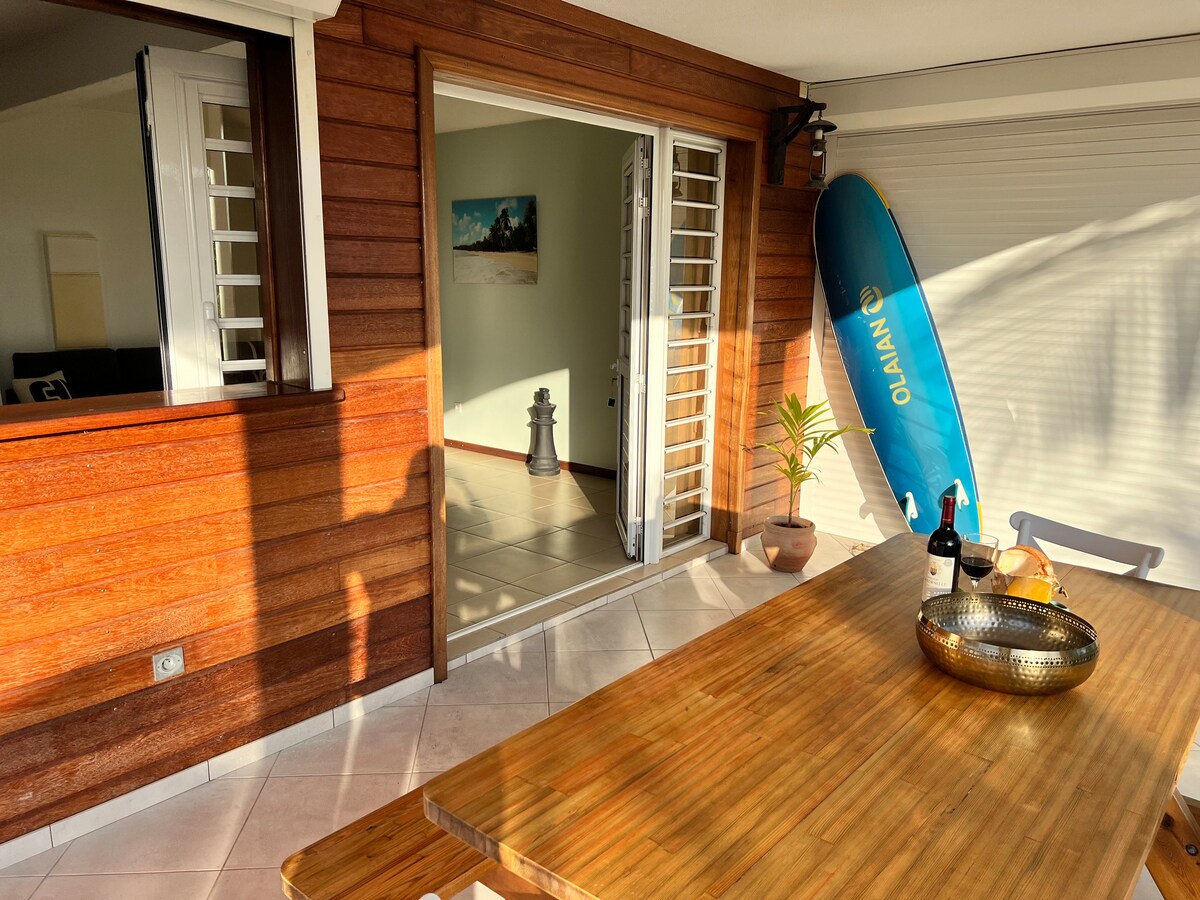 BINE AI VENIT LA LEO Léo oferă „Îlet Madame”: un nou T3 plăcut, fără vizavi, de 90 m2, situat la nivelul grădinii, într-o reședință liniștită, ventilată și sigură, cu acces la piscină. Când intri în apartament, vei găsi: • 1 terasă de 28m2 • 1 bucătărie deschisă complet utilată • 1 living mare • 2 dormitoare cu aer condiționat • 1 vestiar mare • 1 baie • 1 parcare securizată; Situat la 1,5 km de toate facilitățile și la 6 km de plaje. Oaspeții se pot bucura de piscina noastră cu sare de 40 m2.