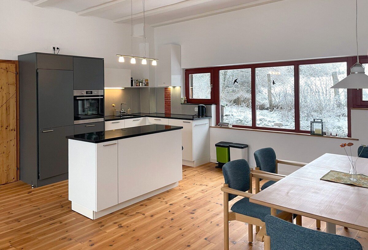 Apartament vechi foarte frumos pentru doi până la patru oaspeți într-o moară istorică. Perfect pentru o vacanță de drumeții sau relaxare. Într-o locație pitorească, în afara orașului Westerwald Hachenburg, cu piața sa pitorească și muzeul în aer liber. Aproape de mănăstirea Marienstatt. Situat chiar pe Westerwaldsteig. Liniște și pace. Deja primul cancelar al BRD Konrad Adenauer a rămas aici. O placă memorială a casei amintește de șederea sa.
