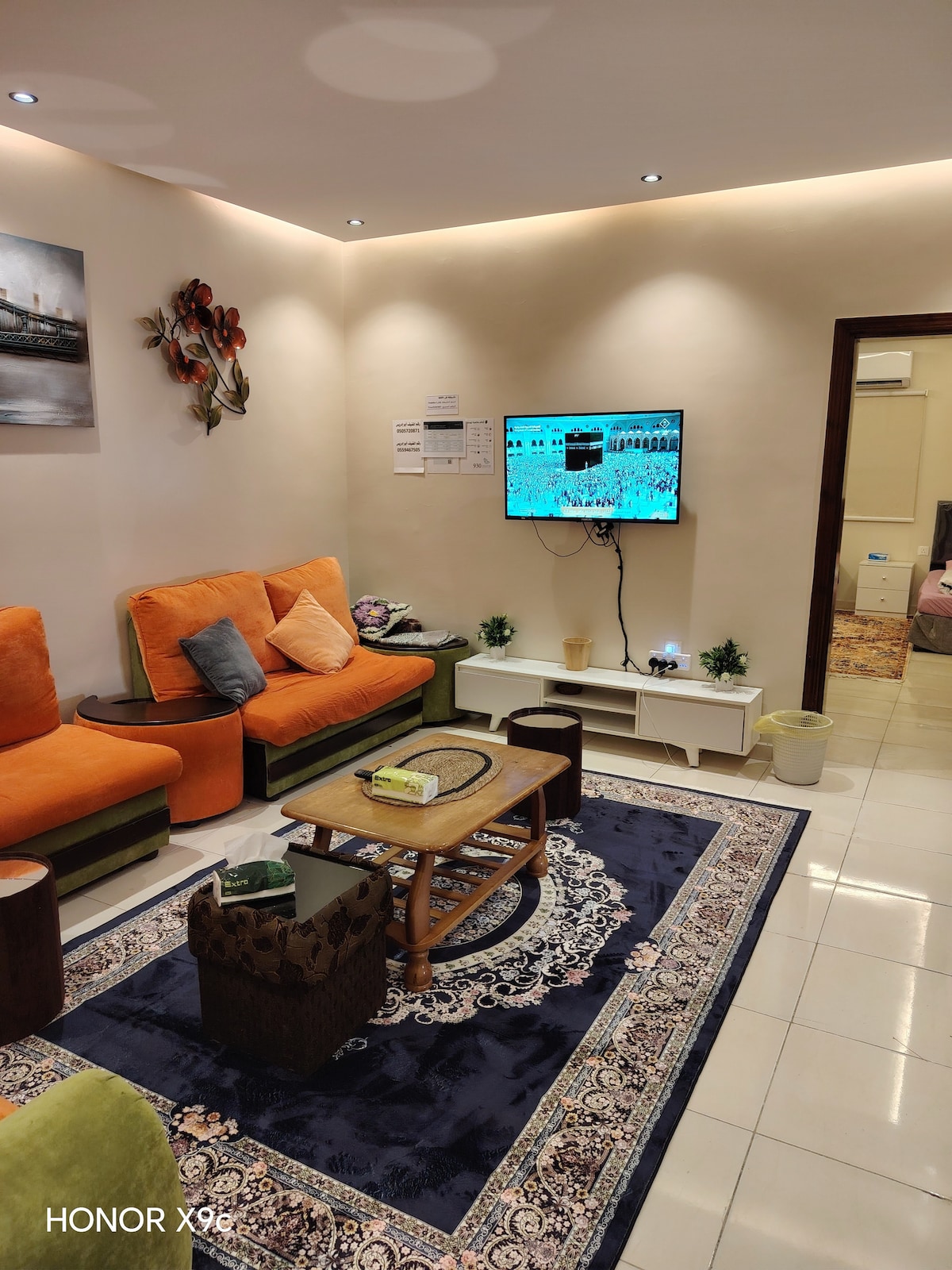 شقة متكامله تبعد عن الحرم عشرون دقيقة بالسيارة وبجوار مسجد كبير وجميع الخدمات متوفرة بالحي تناسب العائلة