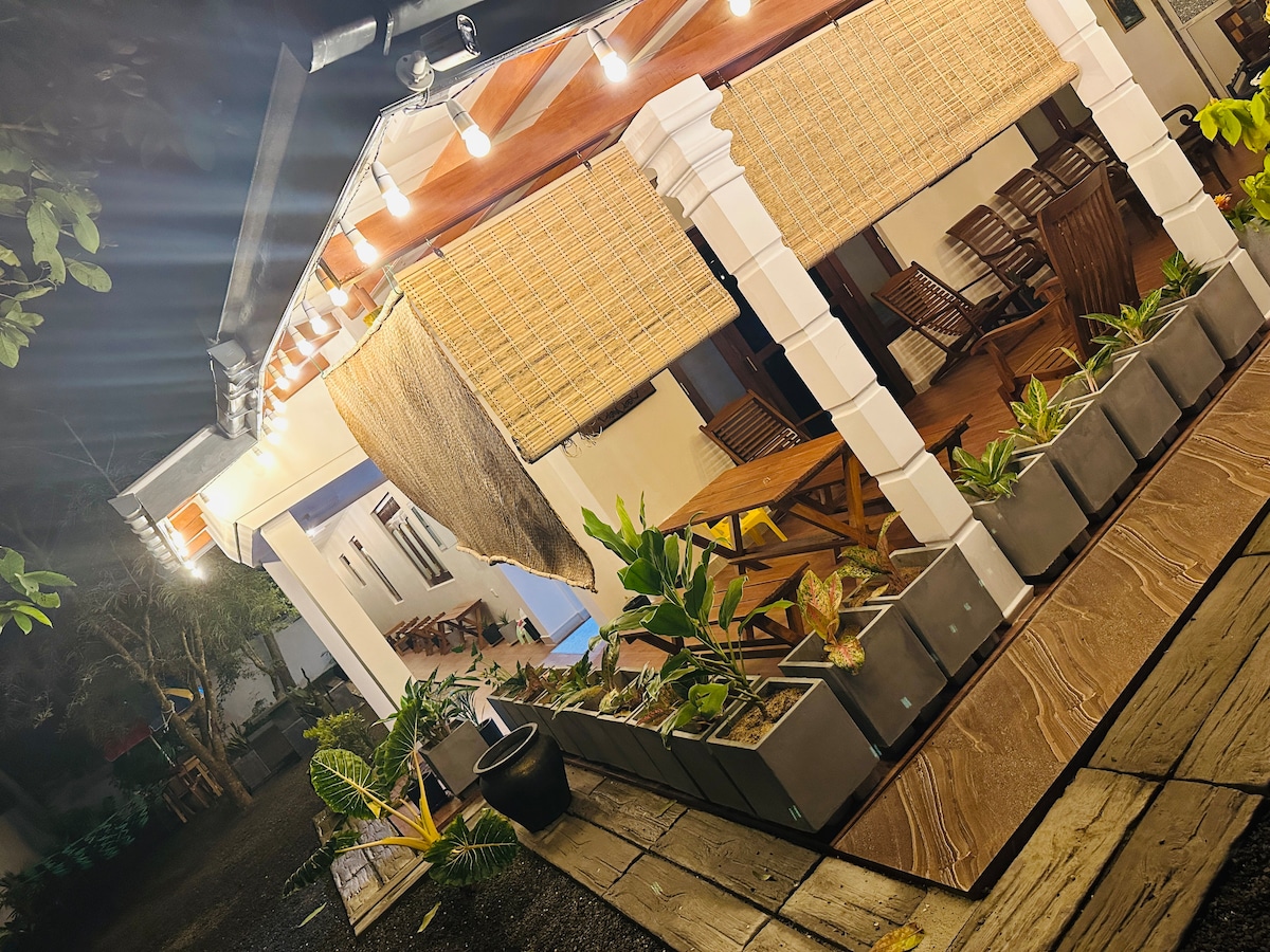 Această căsuță cu 1 dormitor este complet utilată pentru nevoile tale zilnice, de la aer condiționat, bucătărie, WIFI și apă caldă la plase de țânțari. Oferă amestecul perfect de facilități moderne și frumusețe naturală, făcându-l un loc minunat pentru nomazii digitali, cupluri, familii sau prieteni care caută o ședere de neuitat. Un alt lucru este că am un restaurant care pregătește bucătărie srilankeză la ultimul etaj al casei. De asemenea, îți voi oferi mâncarea de care ai nevoie și te voi învăța cum să o prepari, dacă vrei.