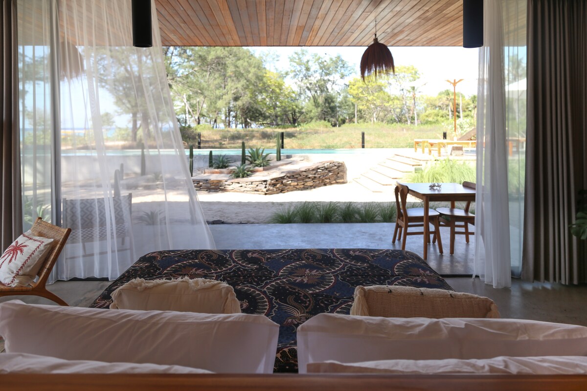 Amenajate în jurul unei piscine infinite primitoare, cele 4 bungalow-uri ale noastre au o arhitectură modernă, cu ferestre extinse din podea până în tavan, oferind priveliști uluitoare ale oceanului și ale peisajului liniștit al lui Gili Meno. Beach Front, este un refugiu de 48 de metri pătrați, care oferă o apropiere de neegalat de ocean, poziționat chiar pe plajă pentru a asigura priveliști uluitoare și sunetele liniștitoare ale valurilor.