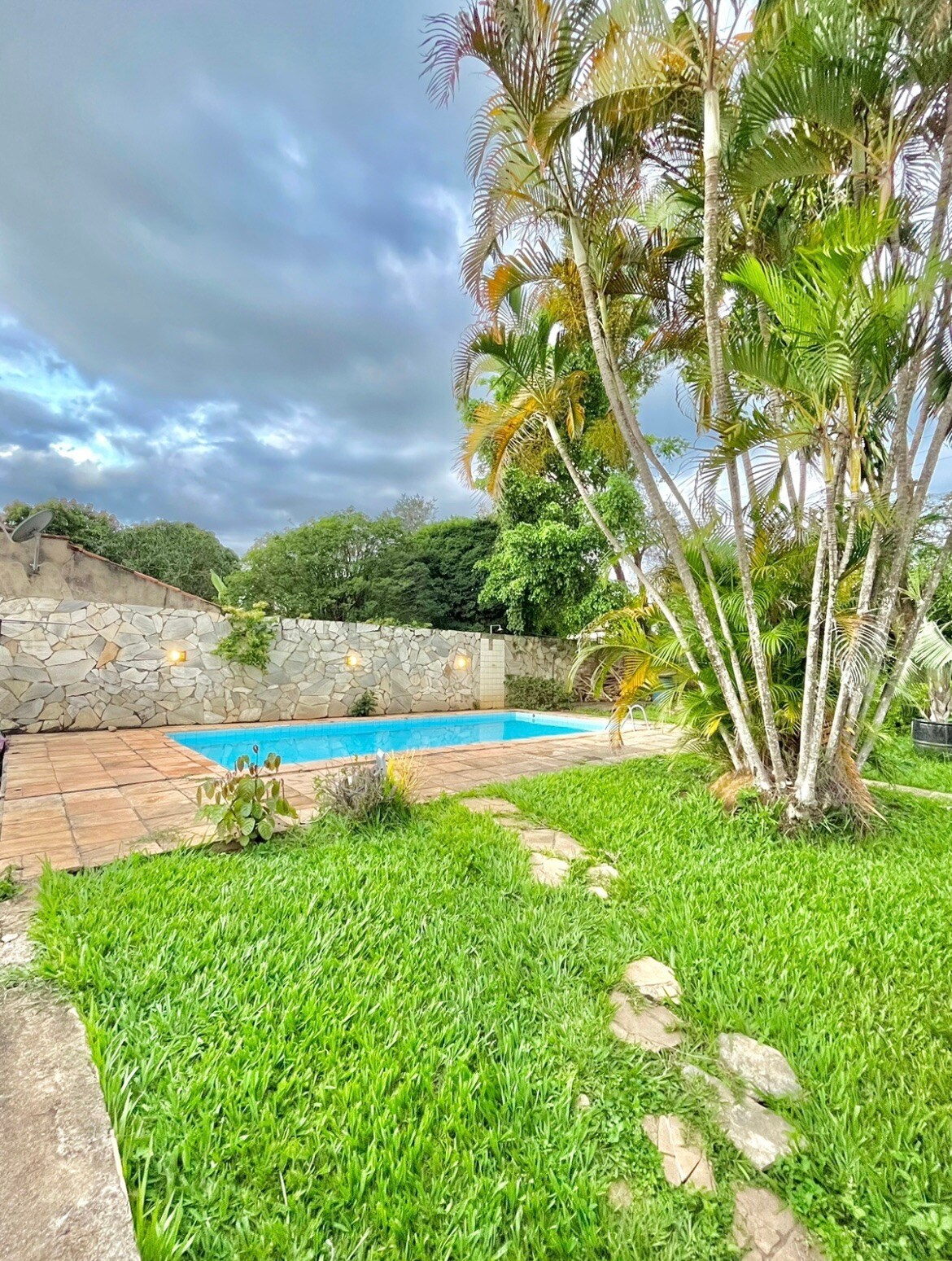Ambiente agradável, arejado e bem-iluminado, com 1000m2. Excelente para relaxar e descontrair com família e amigos. Bem arborizado com diversas frutíferas e pássaros nativos. Possui piscina de 1m de profundidade com cascata, numa área cercada para maior segurança. Playground e sinucão recém reformados. Campo gramado com 2 gols e rede para vôlei/peteca. Sofá grande e retrátil. Cama king-size em um dos quartos. Varanda ampla em torno de todo o sítio. Bem localizado, próximo à supermercados.