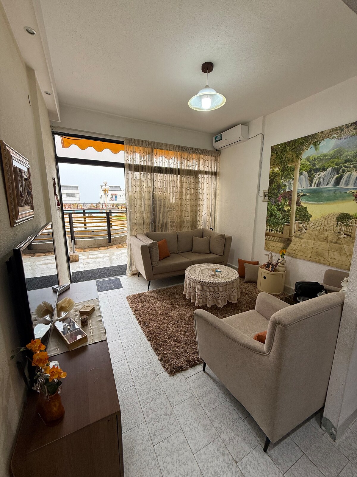 Bucură-te de acces ușor la autostrada principală și mijloacele de transport în comun. Mergi pe jos până la supermarketuri, restaurante, sală de gimnastică și plaje din acest apartament situat central la parter. Vedere la Harissa din fereastra livingului. Mobilier și aparate noi.