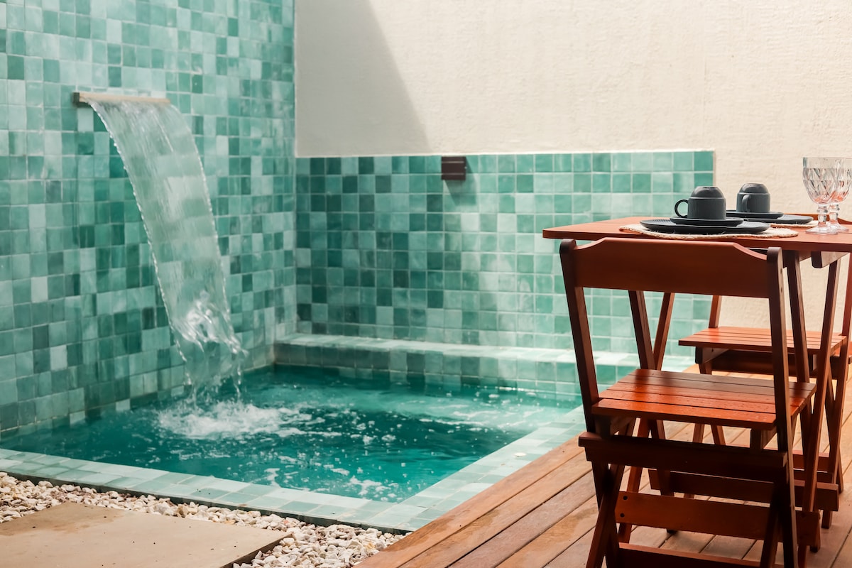 Situat într-o comunitate închisă - MIRACOLE SE plimbă ÎN EAEIA - CASE DE FARMEC . Securitate și liniște totală. Bungalow de lux cu piscină privată. Ideal pentru o lună de miere sau pentru cei care doresc bun gust și intimitate . Situat lângă marea Praia do Toque, care este cea mai bună plajă din São Miguel dos Milagres. Restaurante minunate învecinate. Jangadeiro vine să le ia din fața casei pentru a te duce pe plimbări incredibile la piscinele naturale din regiune . Oferim mic dejun