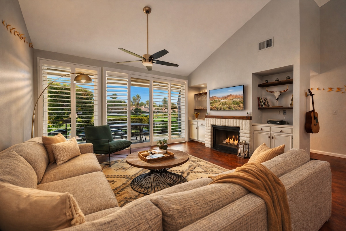 Bine ai venit la stilul de viață Palm Desert. - Interioare elegante cu 1204 mp de spațiu, zone de living separate și terasă în aer liber. - Experimentează confortul unei case de vacanță care se simte ca acasă. - Acces la șapte piscine, golf de campionat, un centru de fitness complet echipat și opțiuni de luat masa la fața locului. - Priveliști montane uluitoare și apropierea de atracții precum Parcul Național Joshua Tree și cartierul comercial El Paseo. - Bucură-te de Wi-Fi gratuit fără taxe de stațiune!