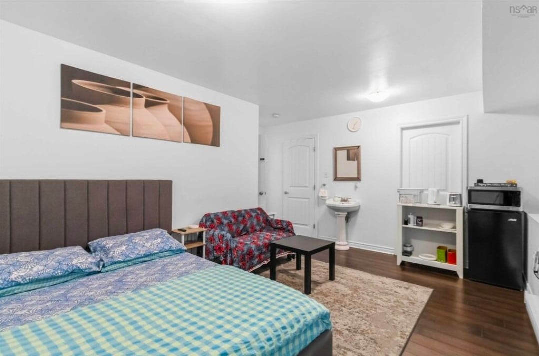 Apartament studio cu intrare privată. Relaxează-te în această suită curată și confortabilă, complet amenajată, cu un pat matrimonial cu baie atașată. Apartamentul este dotat cu dotări esențiale pentru o ședere confortabilă - Wi-Fi, pat queen-size, un mini-frigider, prăjitor de pâine, fierbător de apă și cuptor cu microunde. Situată într-un cartier liniștit, la doar 15 minute de mers cu mașina de centrul orașului Halifax, la 5 minute de mers cu mașina de cel mai apropiat , restaurante, Tim Hortons și Mcdonald. Accesul oaspeților Intrare privată prin partea dreaptă a casei.