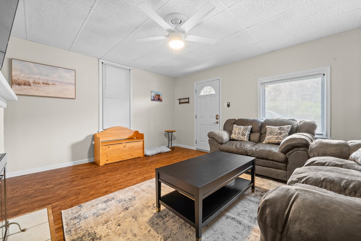 La mai puțin de 2 străzi de toată distracția pe care Southside o oferă. Acest apartament complet echipat este numai al tău. Priveliști și sunete ale orașului chiar în fața ușii tale foarte private. Pat hibrid luxos Queen pufos, spațiu confortabil în living, cu spațiu pentru o a treia persoană în vagon. Mâncare excelentă în bucătărie. Tot ce îți lipsește este o mașină de spălat vase :) Centru de spălătorie furnizat în unitate. Combinație cadă/duș. Internet de mare viteză, birou de lucru, 2 televizoare pregătite Roku, trebuie doar să aduci informațiile contului tău de streaming și să o numești acasă