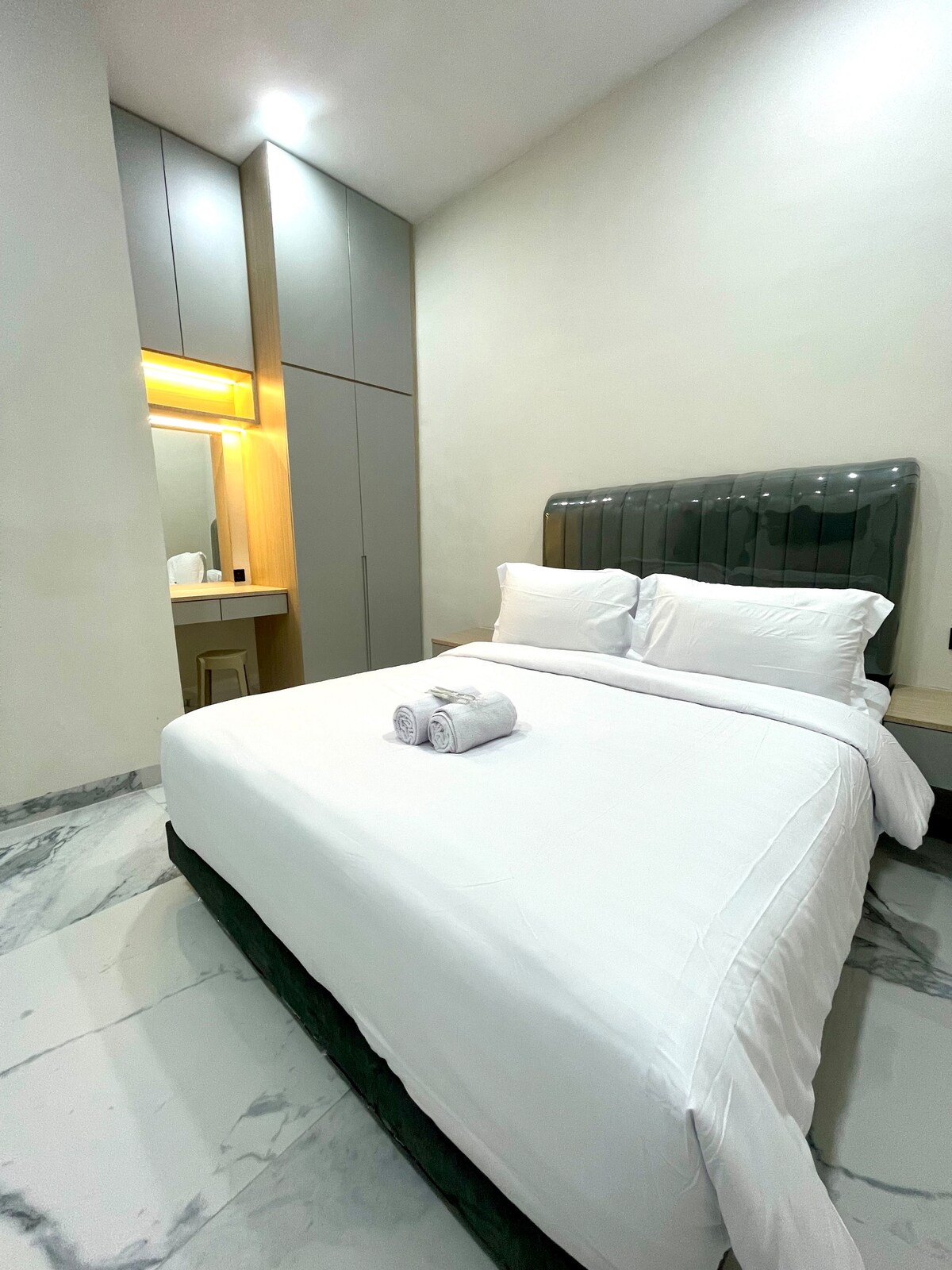 We are Senyaman Homes. Experience the comfort of staying in a modern room with a minimalist and elegant touch. Luxurious marble floors, warm lighting, and neat furnishings create a serene atmosphere perfect for rest. 📍 Strategic Location: • Near culinary centers, cafes, and popular restaurants such as "Ucok Durian, Richeese Factory, Wongsolo, Bunda Thamrin" • Minutes from malls • Business area • Safe and comfortable environment 💡 Suitable for: • Solo travelers • Couples • Business guests