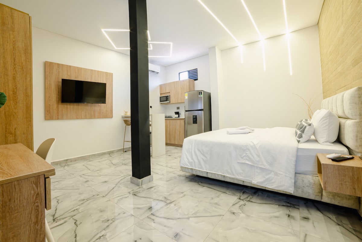 Descoperă un sanctuar exclusivist în El Poblado: arhitectură rafinată, piscină privată liniștitoare, jacuzzi relaxant, zone sociale elegante și confort la nivel de hotel în fiecare cameră. Un refugiu de lux ascuns, făcut pentru momente de neuitat