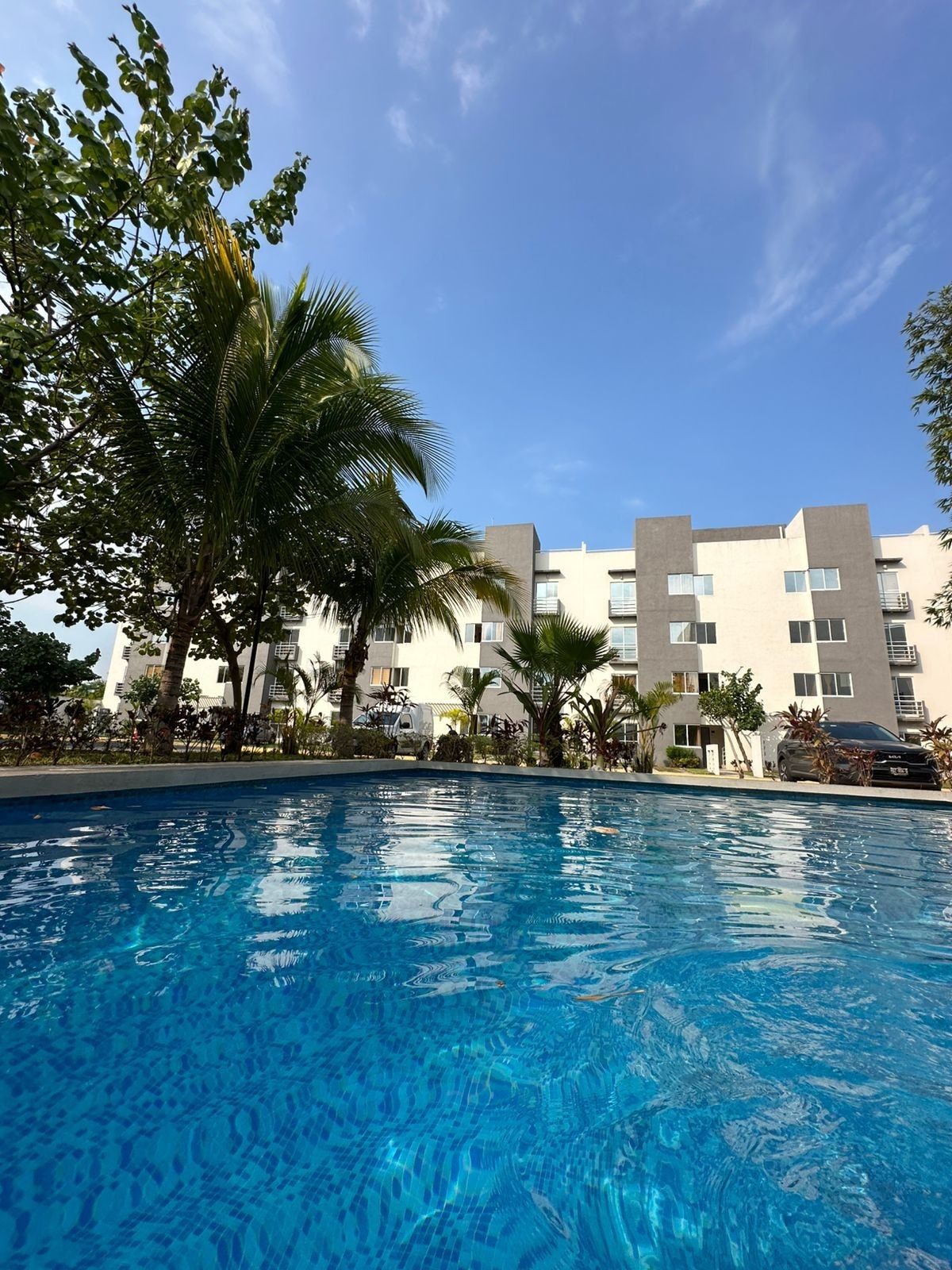 Departamento con alberca a una calle de la playa