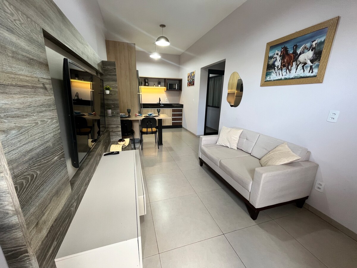 Apartamento de 2 quartos; 2 banheiros; sala de jantar, sala de tv; cozinha; lavanderia. Bem ventilado, com sacada grande e churrasqueira. Prédio novo, somente famílias e central. Próximo a supermercados e farmácias e bancos. Garagem coberta, acesso privado com porteiro eletrônico com senha. Wi-Fi. TV-Box. Acesso ao apartamento por 1 vão de escada ao primeiro andar, acesso único e compartilhado pelas outras famílias.