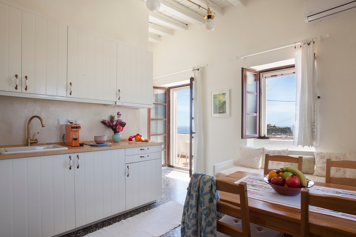Nestled in the heart of Kapsali, lies a hidden gem that beckons those seeking solace and breathtaking natural beauty. This exquisite apartment, presents a harmonious blend of comfort, convenience, and captivating views. With its large veranda offering spectacular vistas of Kapsali Bay and its prime location just moments away from shops, restaurants, and the beach, this dwelling serves as an unparalleled retreat for an unforgettable vacation.