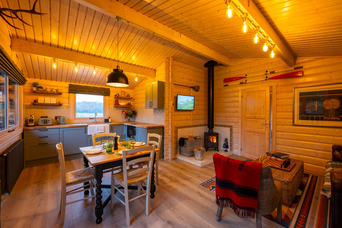 Cabană din bușteni printre copaci și aproape de Tamisa