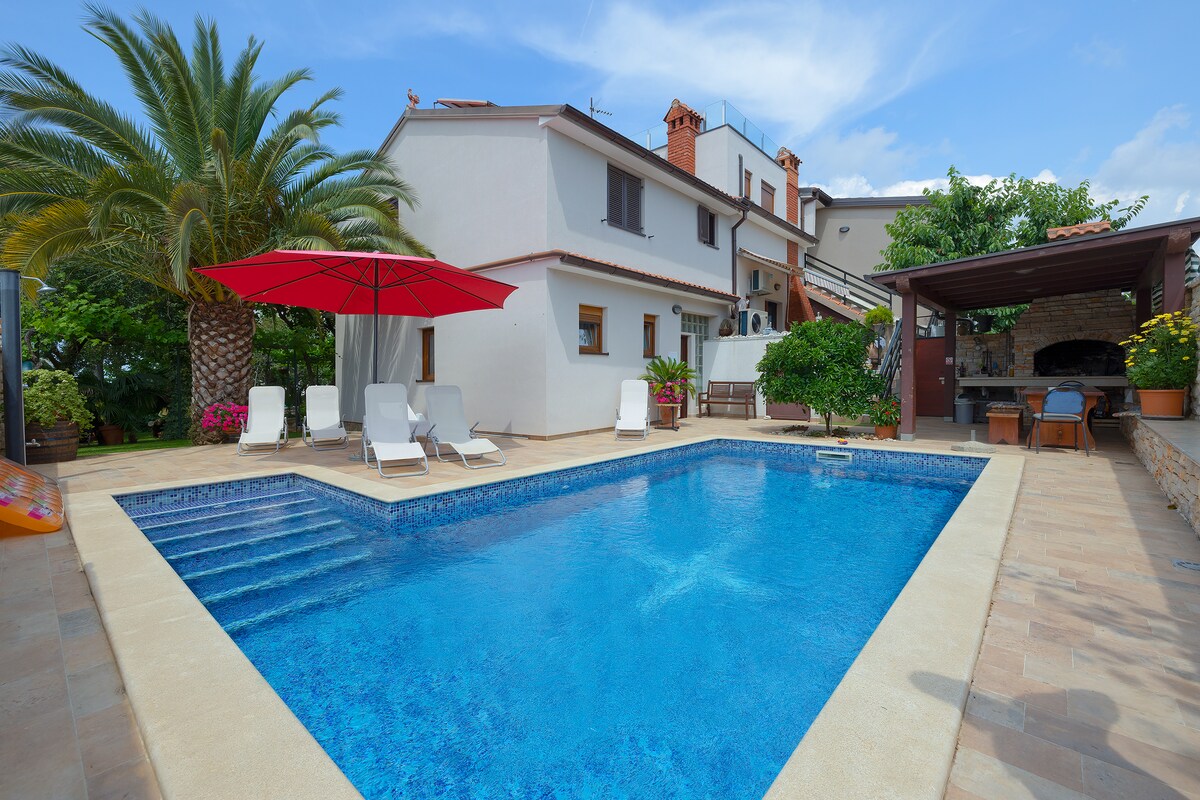 Vilă modernă de top cu vedere la mare + piscină încălzită MOMENTE de fericire: noua clădire de patru stele Villa Maristra-2, bj 2022, în Medulin nu numai că te răsfață cu vedere la mare. o piscină încălzită este la dispoziția ta în lunile de primăvară și toamnă. Bucură-te de vedere la mare la apus de soare de la balcon sau de pe terasa mare de pe acoperiș cu șezlonguri și păstrează aceste momente de fericire în memoria vacanței tale în Medulin! 4 dormitoare cu băi private pentru maximum 8 persoane. Grupurile de tineri nu sunt