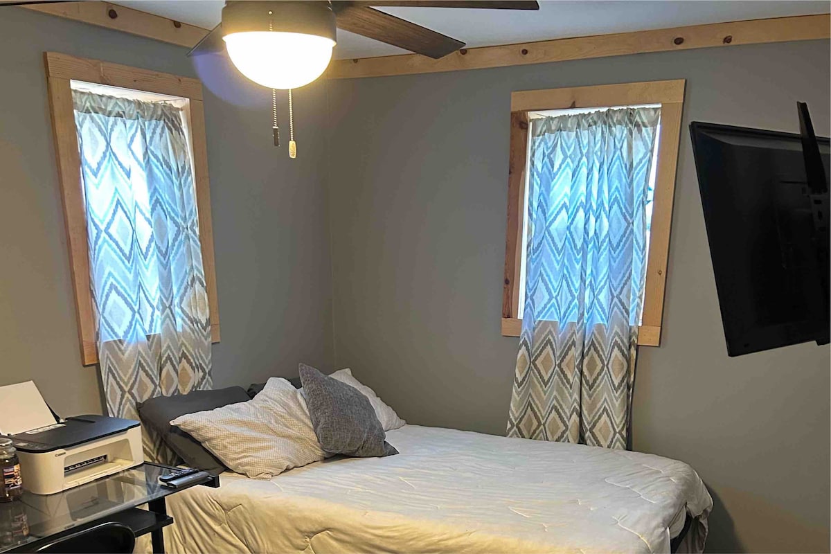 Evadează în dealurile din sud-estul Ohio la Camp Forever II! Camp Forever este la 20 de minute de Universitatea din Ohio și la 5 minute de mers cu mașina de 2 fabrici de vin! Oferim facilități precum o cadă cu hidromasaj, șemineu și jocuri! Cabana are un dormitor principal cu un pat matrimonial și un dormitor suplimentar cu 2 paturi de o persoană și o saltea extensibilă. Ne plac animalele de companie și insistăm să le aduci cu tine pentru ședere. proprietatea are o scară în spirală* drumuri secundare necesare pentru a accesa proprietatea* O altă cabană se află la 67 ft distanță