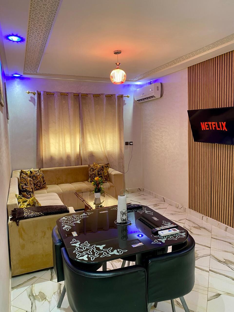 Casa ta în inima Meknes! ✨ Descoperă acest apartament frumos, un refugiu al păcii care combină modernitatea și farmecul local. Perfect pentru familii, cupluri și călători de afaceri. 🌇 Bucură-te de vederea panoramică unică de la balcon. 🎬 Relaxează-te seara în fața televizorului inteligent de 65" (Netflix, Disney+). 🔑 Bucură-te de Wi-Fi rapid, bucătărie completă și garaj gratuit. 📍 Poziție excelentă pentru a explora totul pe jos. Apartament 100% pentru nefumători 🚭. Check-in simplificat.