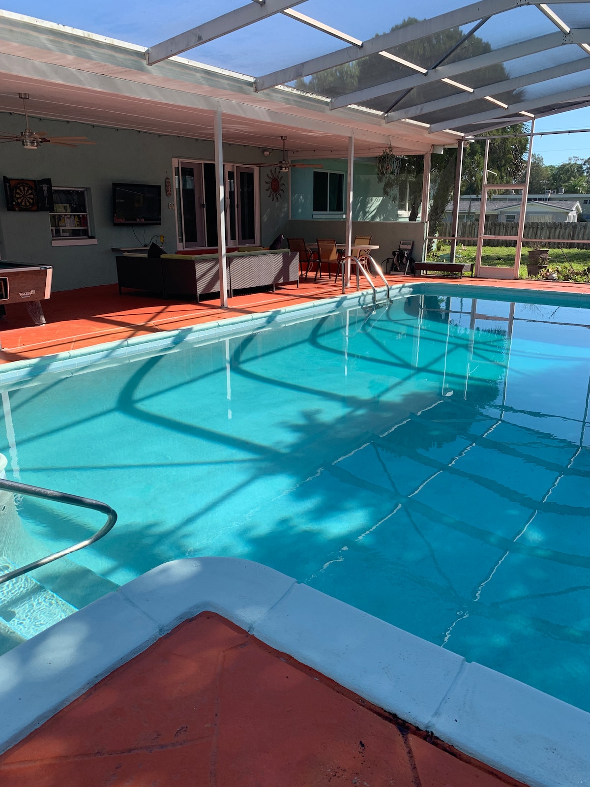 Your family will be close to everything when you stay at this centrally-located pool home. Only 1.9mi from Eau Gallie Arts District, fine dining, shopping & fun. You will also be less than 5 miles from the pet friendly beaches & less than 10 minutes from downtown Melbourne. On site you'll enjoy a beautiful salt water swimming pool, patio bar, pool table, HD TVs & Gigabyte internet with plenty of space. 2 queen beds, 2 twins, sofa, hammock & queen size air mattress and a pack-n-play
