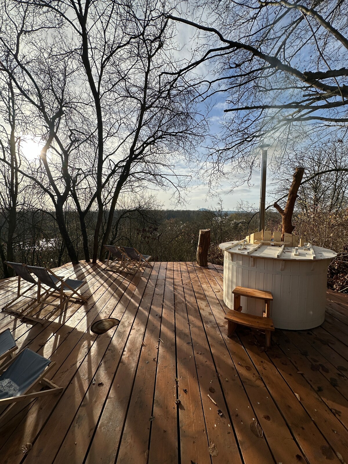 Exclusive opportunity to enjoy peace and quiet with the best view of the Říp - The czech national mountain from our 2 unique custom made pods. Make a great experience even more incredible by securing the whole place to yourselves. R.I.P. by ŘÍP - besides great views each pod has a bed - double bed and sofabed. Each pod has lounge seats and fire pit and/or BBQ. There is outdoor kitchen equiped for basic cooking, small fridge, toilet and shower with hot water.