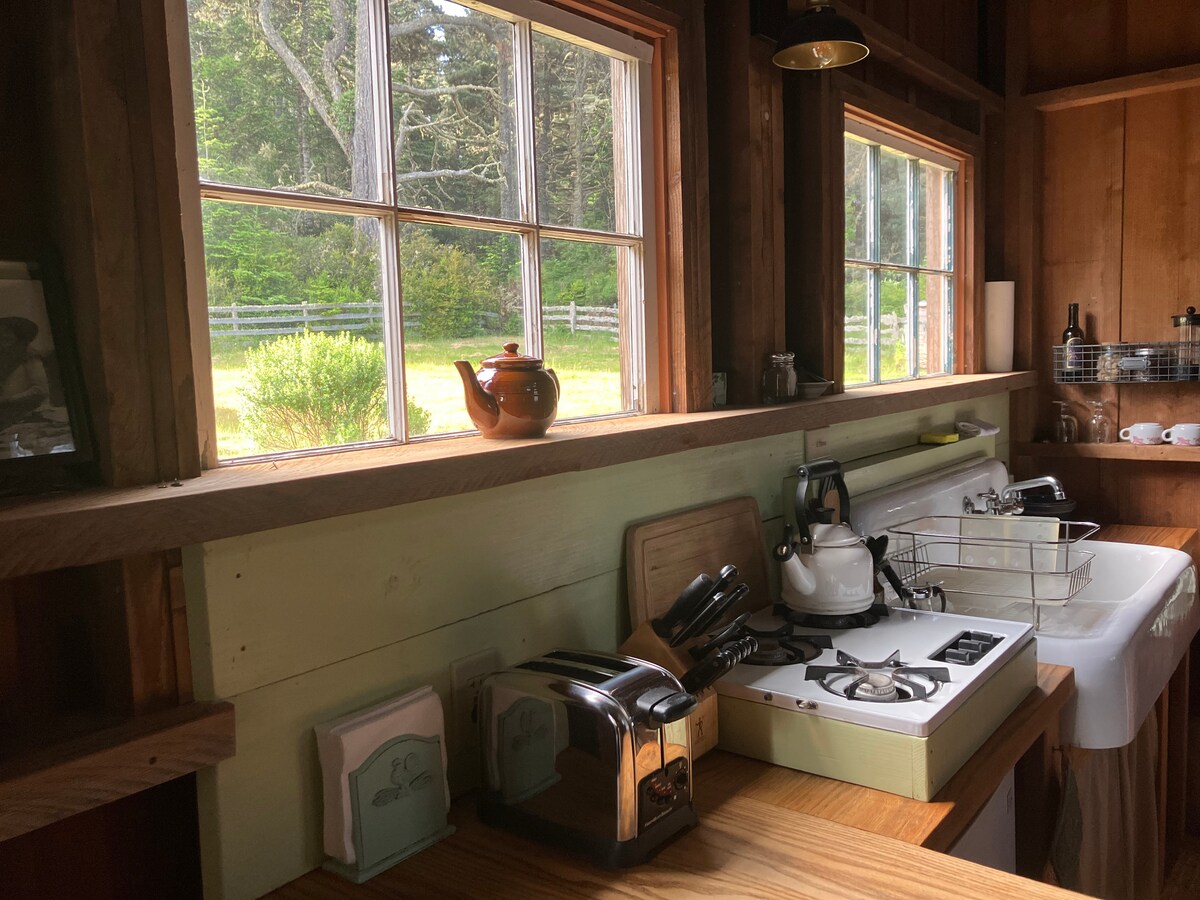 Cabana noastră liniștită este amplasată printre pădurile roșii, la câțiva kilometri de coasta Mendocino. Tavanele înalte și luminatoarele fac ca acest spațiu să se simtă spațios, oferind lumină naturală și priveliști ale copacilor maiestuoși. Comunitatea înconjurătoare este specială, mulți rezidenți locuind aici de zeci de ani, îngrijindu-și gospodăriile. Pe drum, este posibil să vezi bovine, cai, porci și găini. Cerb, coiot, vulpi, lei de munte, bufnițe, șoimi, vulturi și urși frecventează, de asemenea, zona.