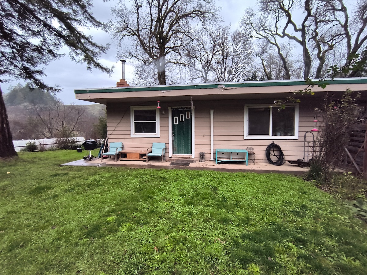 Redwood State parks close by to this 2 bed private ground-floor guest cottage. Peaceful & private, own entrance below the main house. Beautiful homestead setting surrounded nature, explore the Redwoods, parks or coast, with dark starry nights to relax & recharge. Luxury spa like soaking tub, full kitchen , with large microwave (NO OVEN ), stone-walled flower garden, and forest views & dramatic canyon views from garden. pet friendly with access to a fenced meadow for dogs, No TV fast Wifi