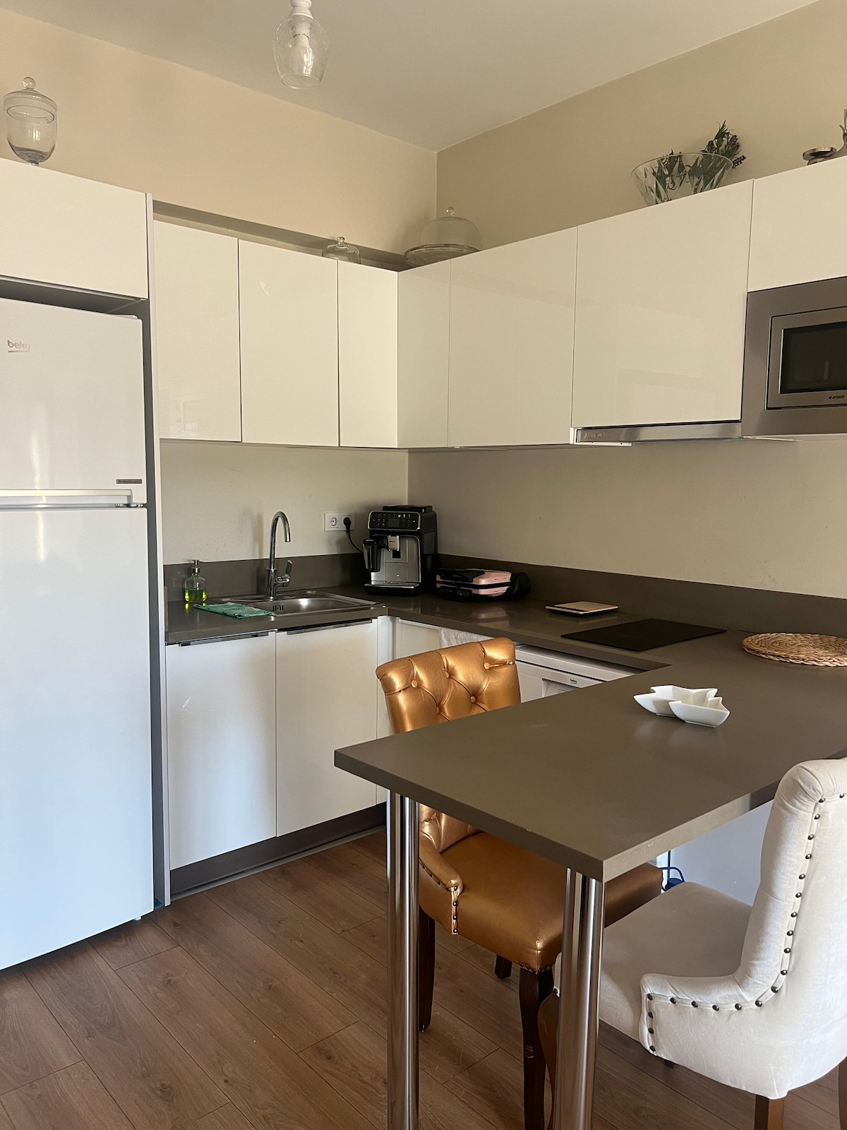Situat pe site-ul MyWay Wins Blue, acest apartament luxos 1+1 oferă o combinație de confort și privilegiu. Te așteaptă cu multe facilități sociale, cum ar fi plajă artificială, piscină interioară/exterioară, fitness, saună, hamam, cinematograf, teren de baschet, securitate non-stop, parcare. Apartamentul nostru este complet mobilat și echipat cu un televizor cu ecran uriaș de 70 inch, pat confortabil, balcon mare, bucătărie încorporată și internet de mare viteză. O experiență liniștită te așteaptă în confortul unei vacanțe.