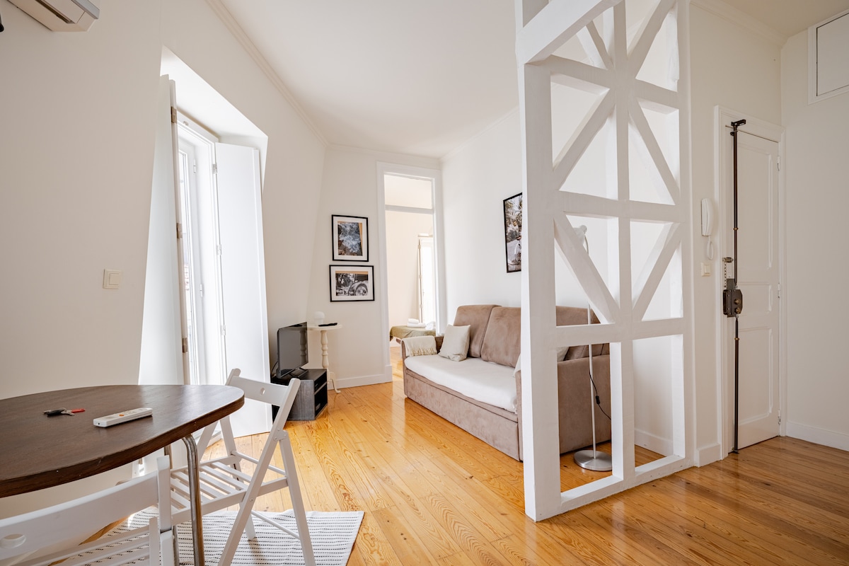 This 1 bedroom apartment Is located in the heart of Rossio. It is a fifth floor on a 19th century building, without elevator. Great views throughout the apartment, with everything nearby. It is an ideal apartment for a couple (2 people), that don't mind climbing stairs. Fully equipped apartment with free Wi-Fi. *2025 Update* The City Hall as granted Rooftop Carmo, which Is a Bar/Restaurant across the street a Loud Sound Permit. Ear plugs will be provided. The Living room ceiling was switched.