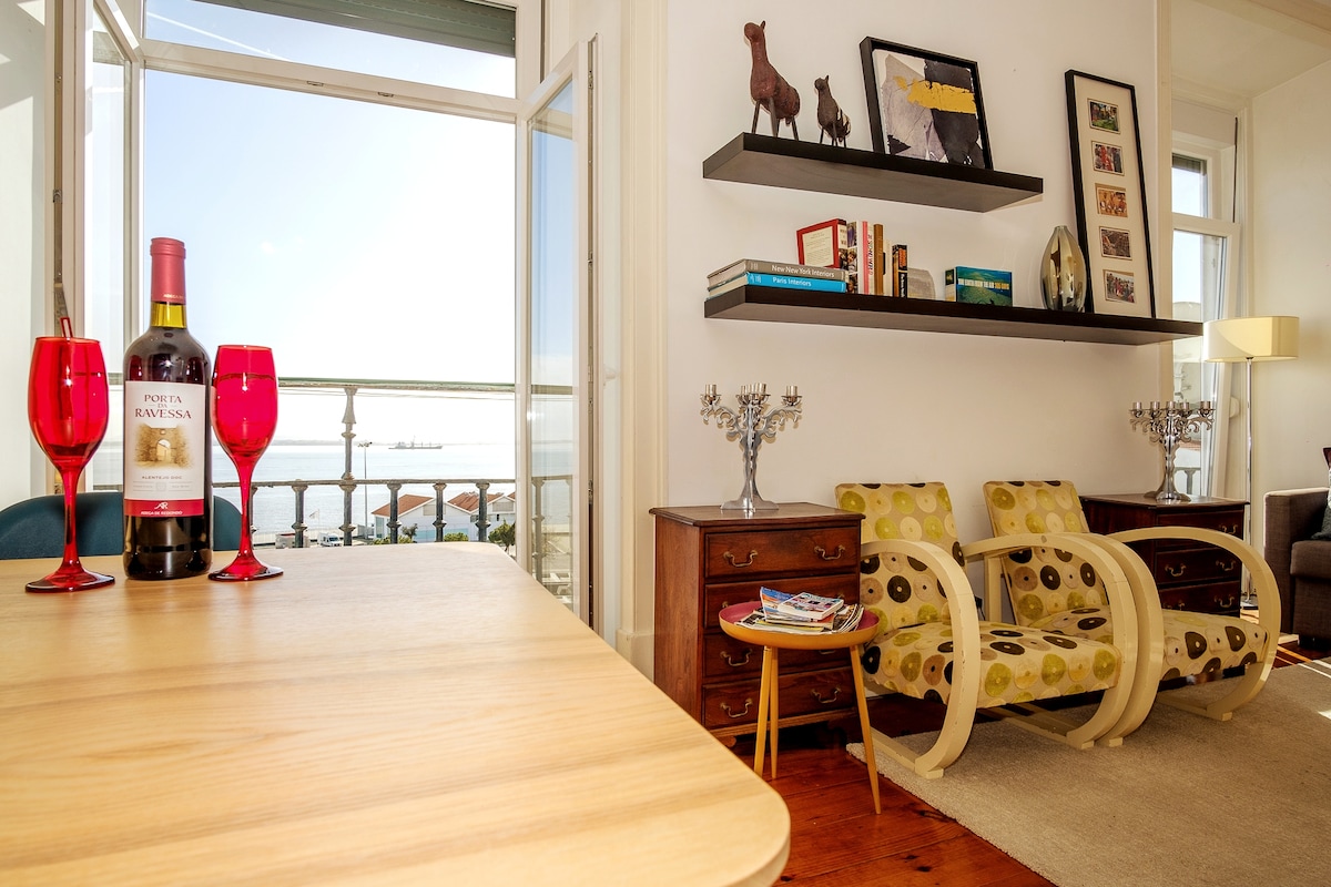 The apartment has one bedroom with a double bed, a living room, a complete bathroom, a fully equipped kitchen and a nice terrace with a view for the Tejo river. We accept couples with children. The living room has a sofa-bed where two children can sleep. Baker, butcher and grocer's are nearby. Buses nº735, nº712, nº726 and nº730. Historic tram 28 in a 5 minute walk. Metro station of Santa Apolónia in a 12 minute walk.