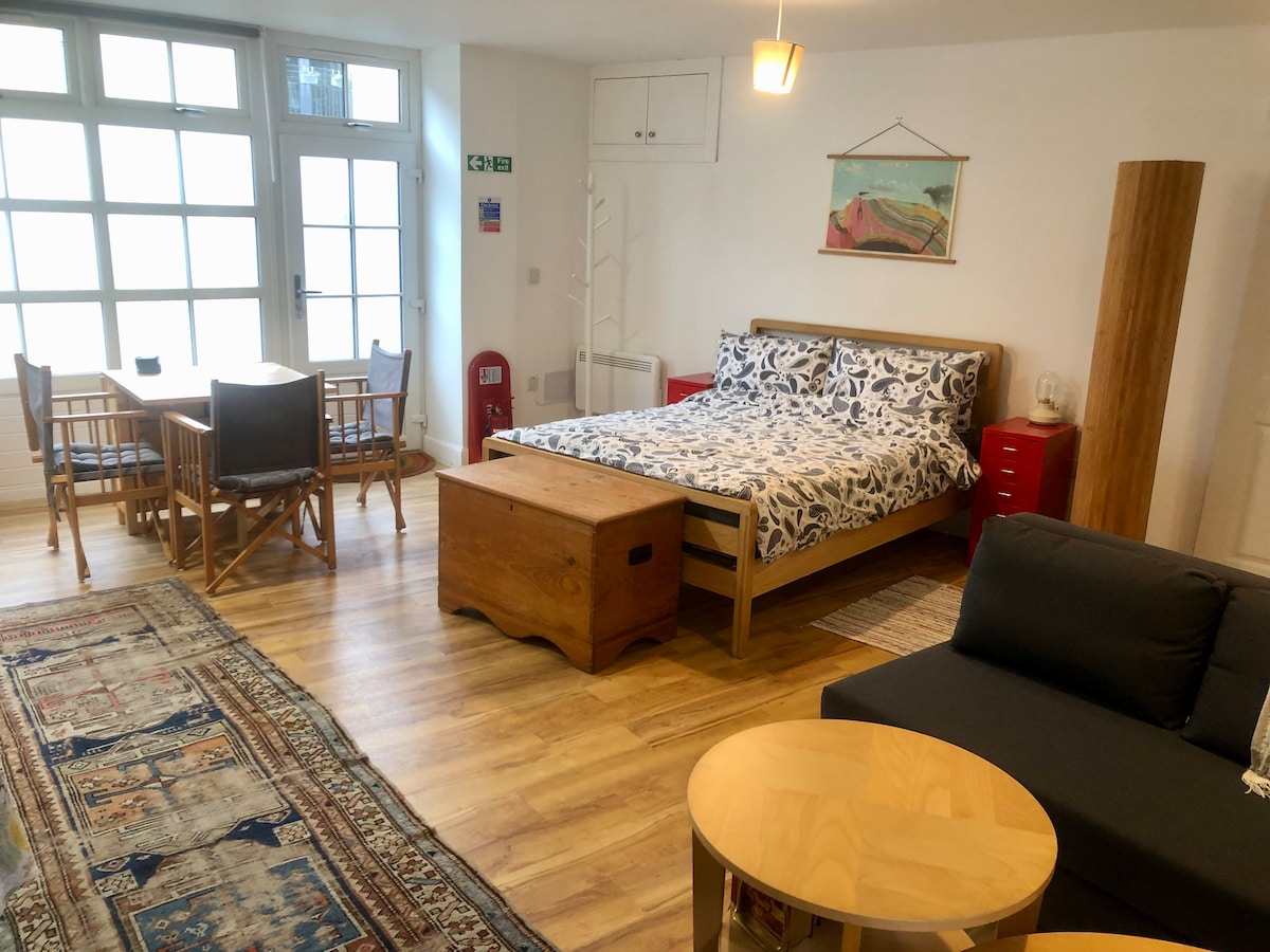Un apartament studio modern, complet mobilat, în sistem self-catering, cu acces la ușa principală pe o stradă pietruită frumoasă și liniștită, aproape de centrul orașului. Un pat dublu și o canapea extensibilă. Duș și bucătărie complete, frigider/congelator, mașină de spălat.