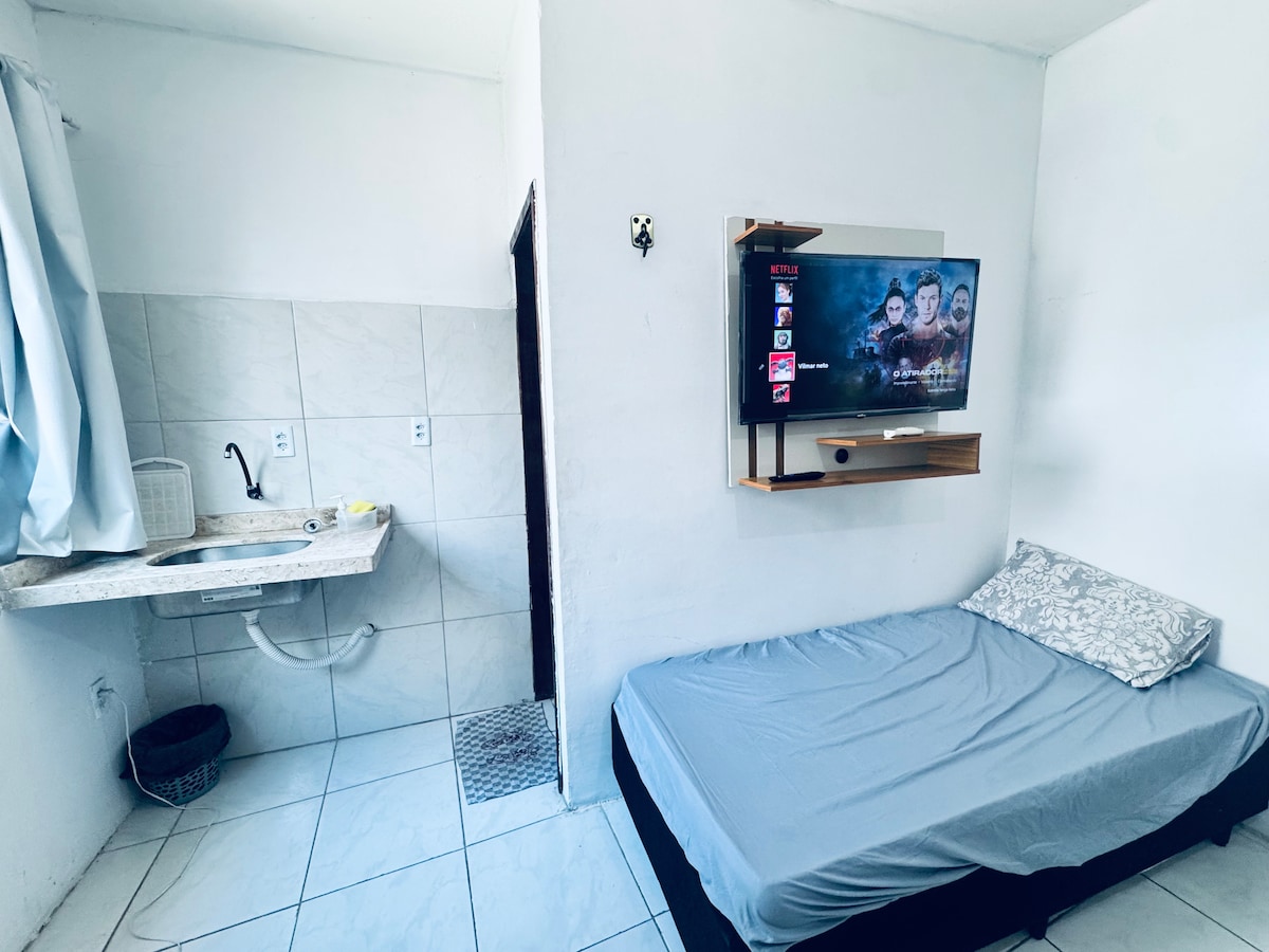 Spațiu complet mobilat! Ideal pentru un cuplu. Aconchegante și versatil! Avem un garaj pentru o mașină mică, motocicletă și Wi-Fi gratuit! Apartamentul are aer condiționat în toate camerele. - 1 dormitor cu pat matrimonial și dulap - Duș electric - TV în living și dormitor - 2 băi - Bucătărie completă - Mașină de spălat. Situat la: - 1,4 km de Spitalul Regional Nord - 800 de metri de supermarketul Lagoa - 250 de metri de sala de sport deschisă nonstop - 1 km de farmacii