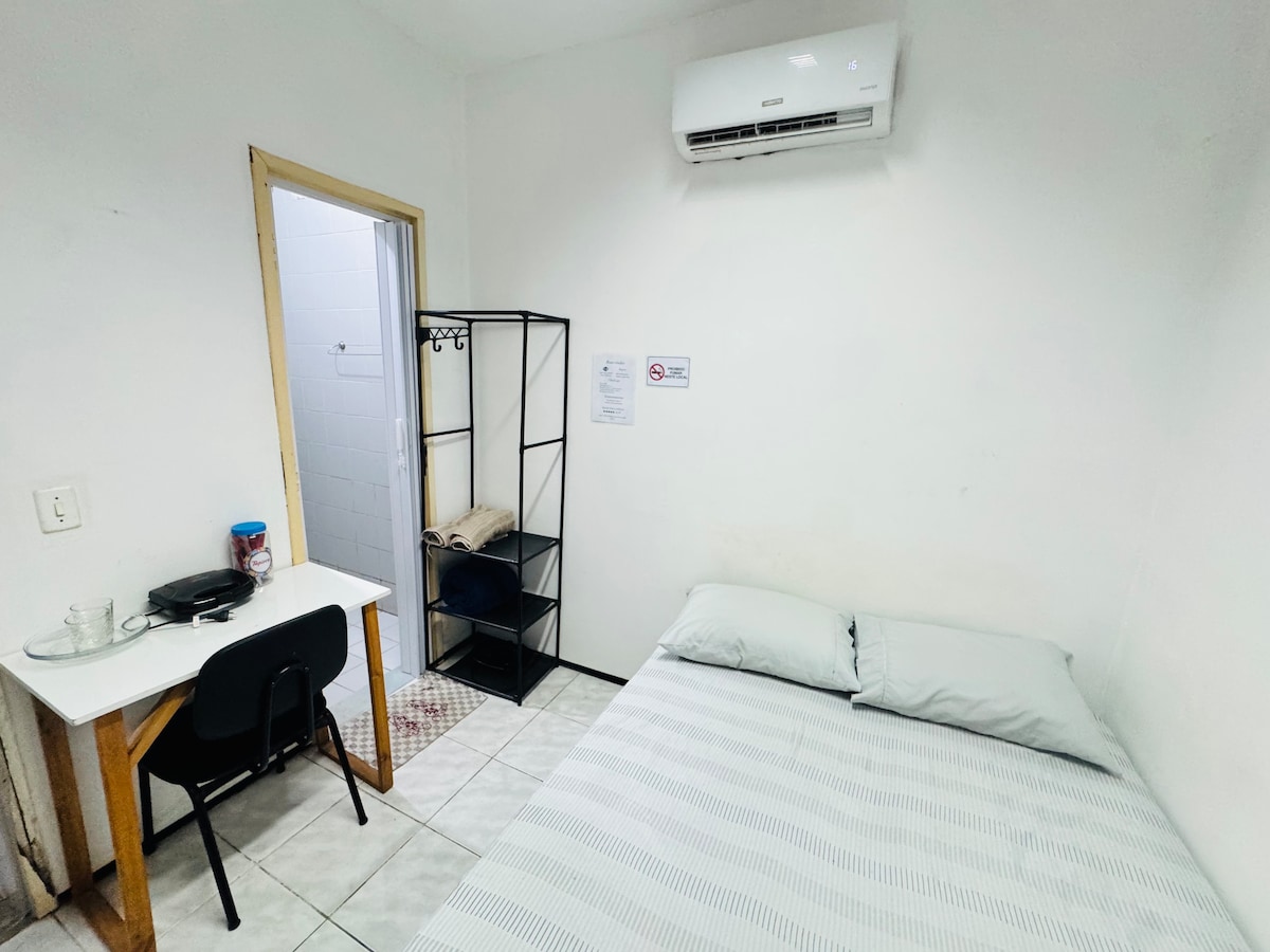 Apartament super confortabil cu 03 paturi de o persoană și 01 saltea suplimentară,aer condiționat , ventilator, minibar, cuptor cu microunde, aparat de făcut sandvișuri, cafetieră, veselă, tacâmuri, pahare, Wi-Fi, smartv cu Netflix, prosoape, lenjerie de pat, fier de călcat , acces la mașina de spălat rufe și haine . Bucură-te de acces ușor la tot ce ai nevoie în această locuință bine situată, la 1 km de centrul sobral,aproape de piață ,pizzerie cu acces la Uber ,taxi