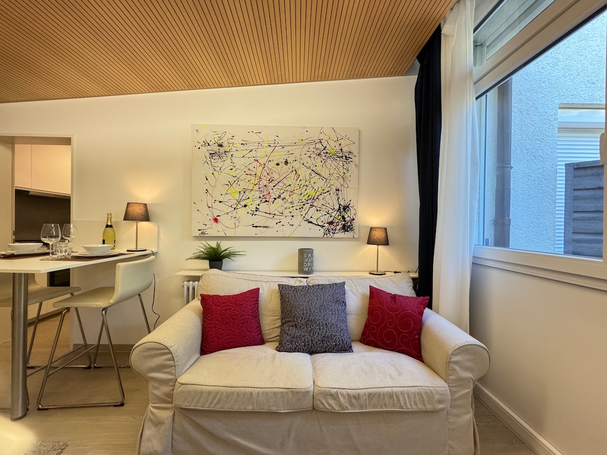 Apartament luminos cu o cameră, într-o vilă Gründerzeit listată şi renovată în cartierul liniştit vilă Freiburg Wiehre. Centrul este la 600 m distanţă. Există numeroase pub-uri frumoase, restaurante și oportunități bune de cumpărături în zonă. Apartamentul are o bucătărie nouă (chicinetă), inclusiv o mașină de spălat vase, astfel încât este creată o zonă deschisă de living-sufragerie (bucătăria nu este o cameră separată). Apartamentul include, de asemenea, o baie nouă, modernă, cu cabină de duș mare.