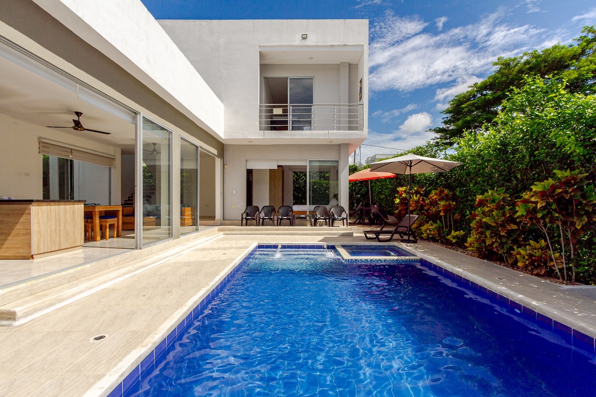 Casă frumoasă în complex rezidențial exclusivist, cu supraveghere non-stop. Bucură-te de priveliști frumoase, cântece de păsări și aer curat în timp ce împărtășești momente de neuitat cu familia și prietenii. Aer condiționat Casa noastră are energie solară, garantând electricitate în timpul ploilor abundente care pot provoca pene de curent în zonă. Poți face activități în aer liber, cum ar fi drumeții ecologice, ciclism, înot, grătar sau asados în cuptor de lut Sprijinul intern este suplimentar.