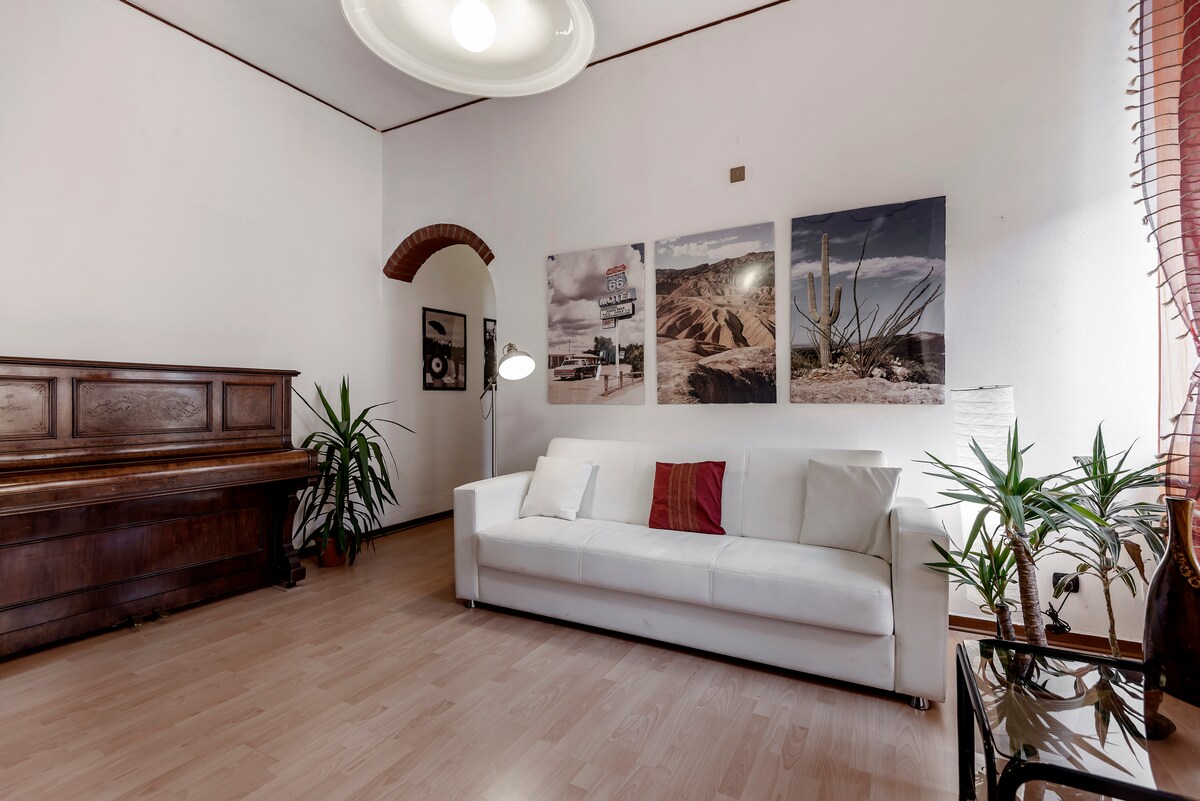 Pășește de la podelele din marmură ale livingului până la cheile din lemn pal ale dormitorului din acest apartament luminos renovat. Mobilierul texturat variază de la piele la pânză, în timp ce proprietatea beneficiază, de asemenea, de vedere la balconul înrămat în copac. - În octombrie 2021, Casa de pe bulevard a fost publicată în revista de design „Casa Facile” și a fost premiată ca fiind cel mai tare apartament de pe Airbnb din Milano. - Cir: 015146-CNI-01443