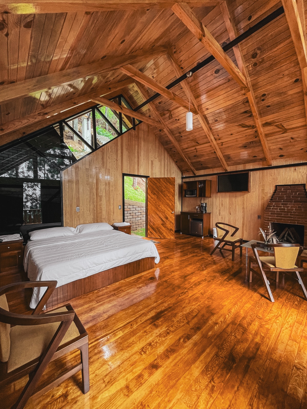 Evadează în liniștea pădurii: în San José del Pacífico Scufundă-te în liniștea Cabanei noastre nr. 1, un adevărat sanctuar amplasat adânc în inima pădurii, complet înconjurat de copaci maiestuoși. Aici, natura este gazda ta principală, invitându-te să te deconectezi și să găsești o pace de neegalat. Imaginează-ți acest lucru: Trezește-te cu cântecul blând al păsărilor, singurul sunet care va sparge liniștea dimineții.